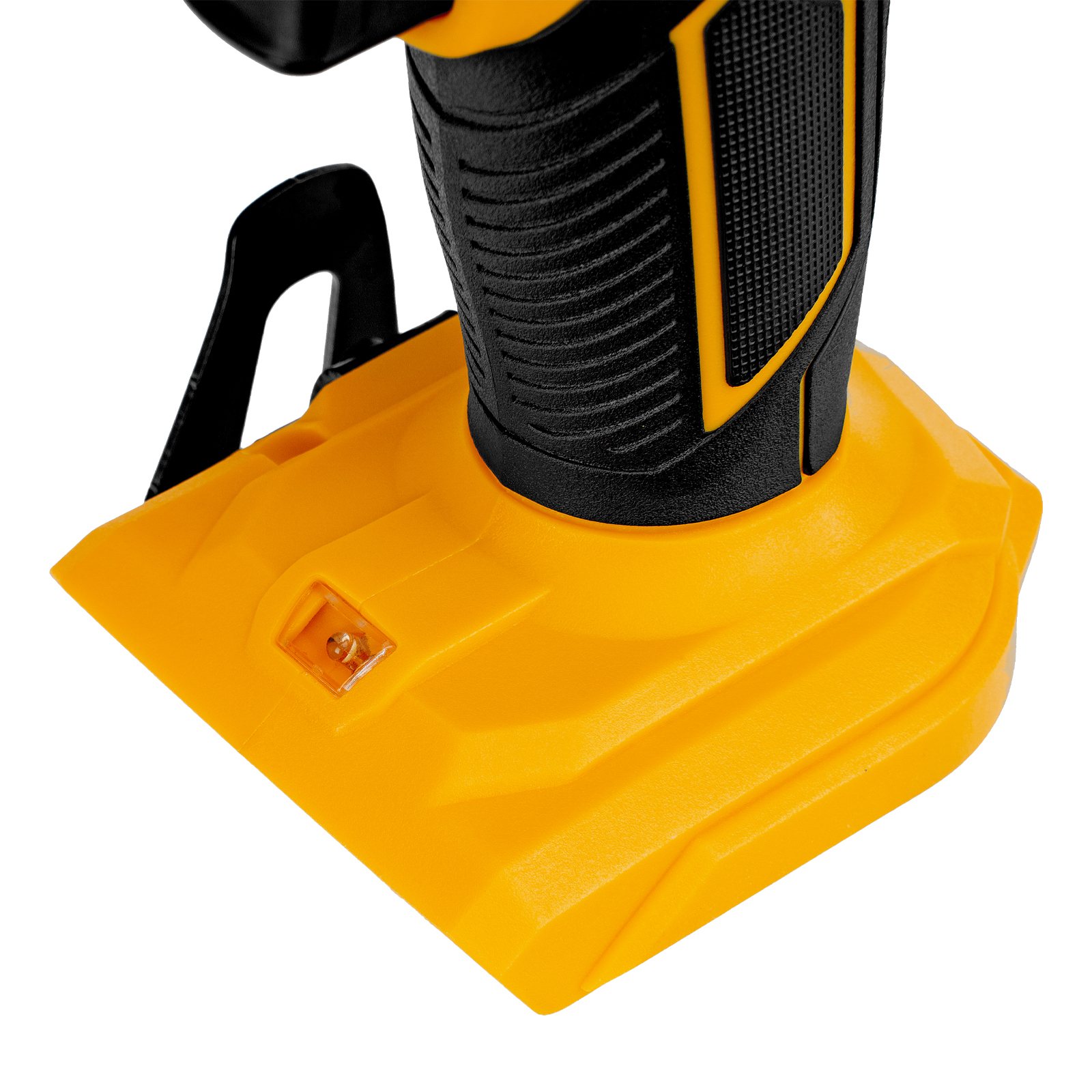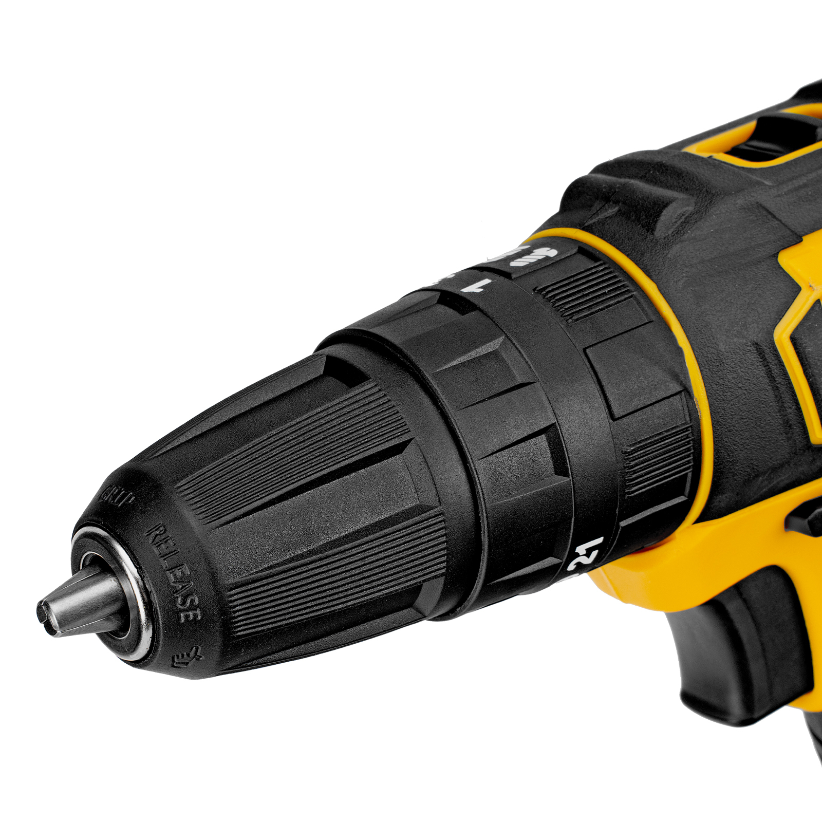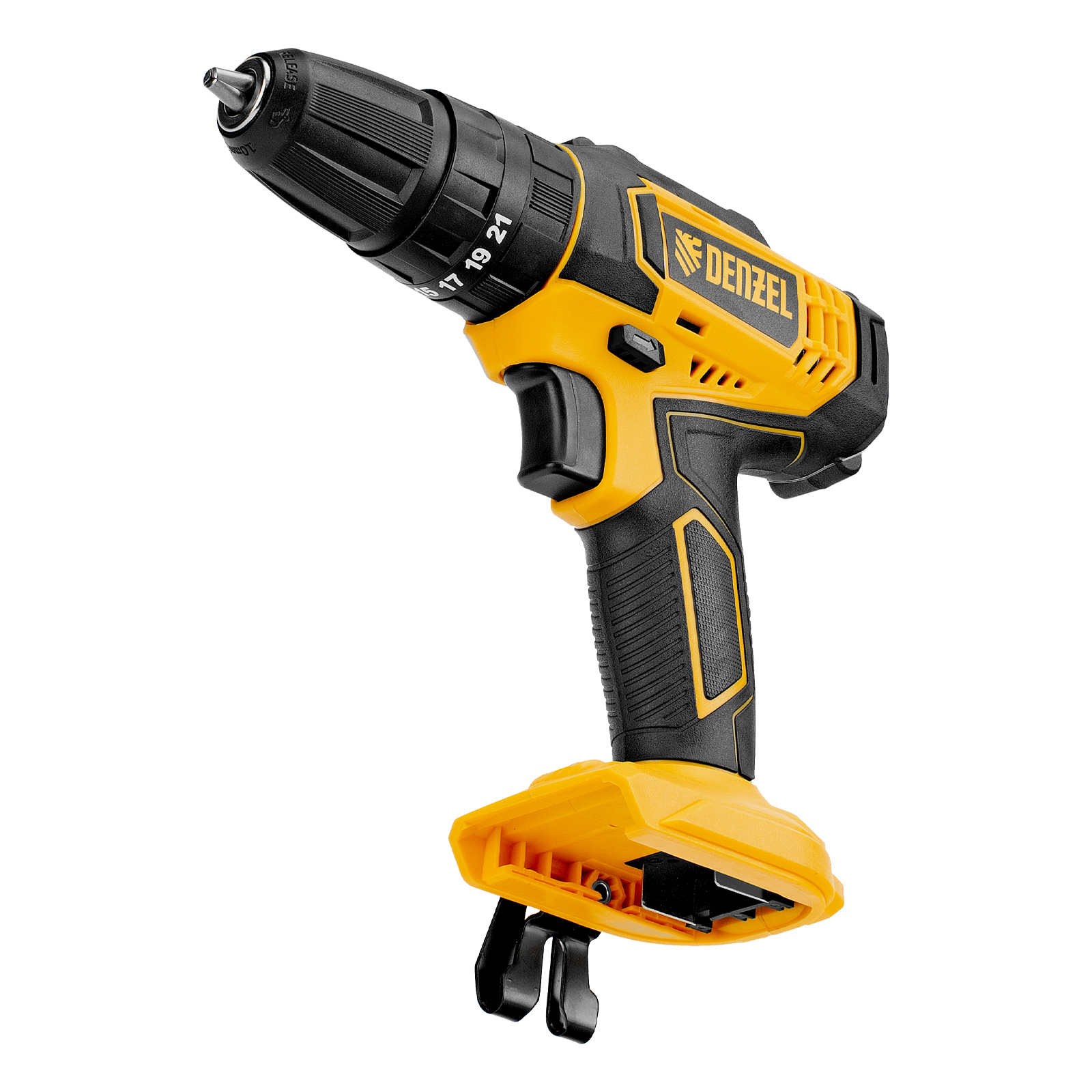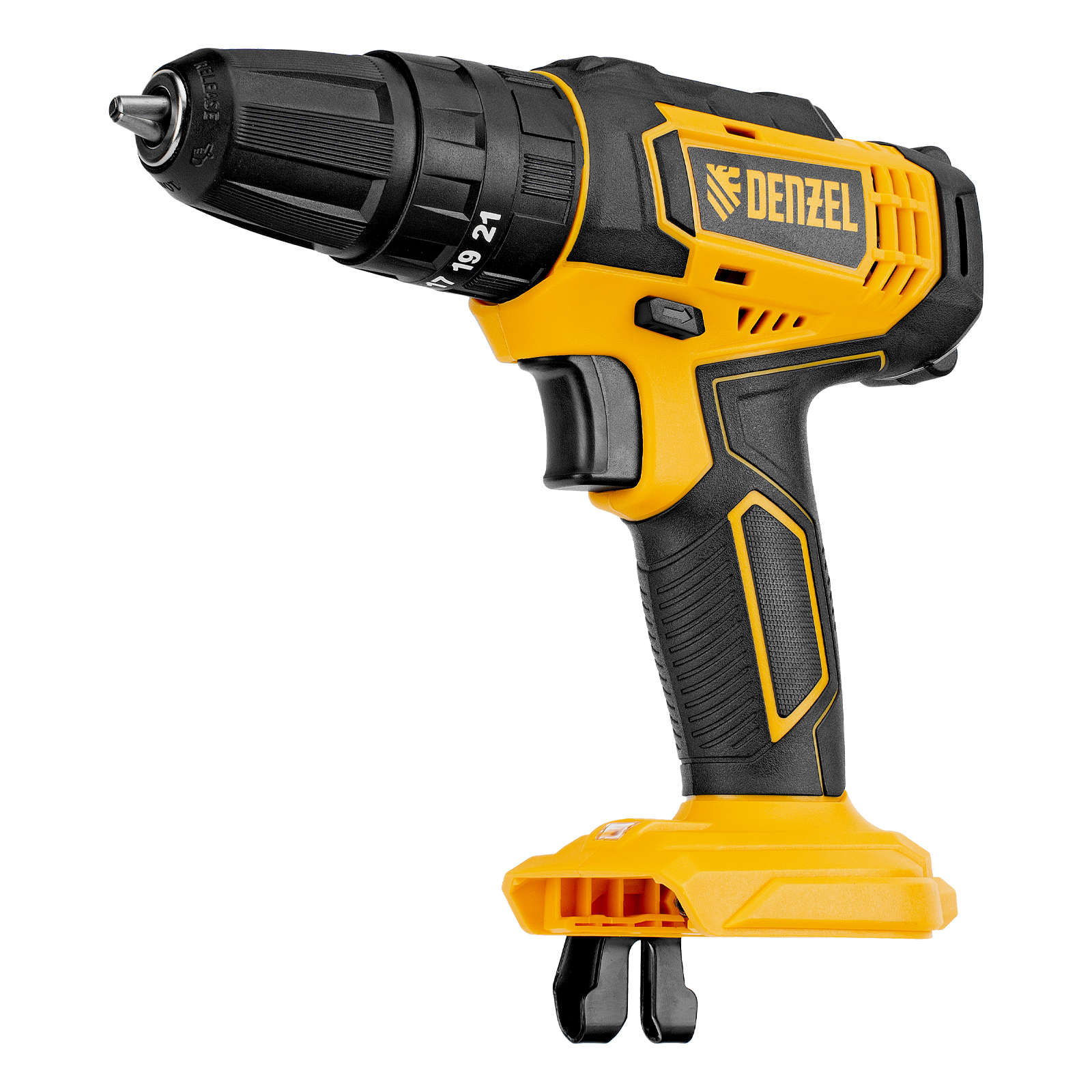 - Универсальность — дрель-шуруповерт совместима с любым Li-Ion аккумулятором и зарядным устройством единой платформы Denzel Battery System 18V.