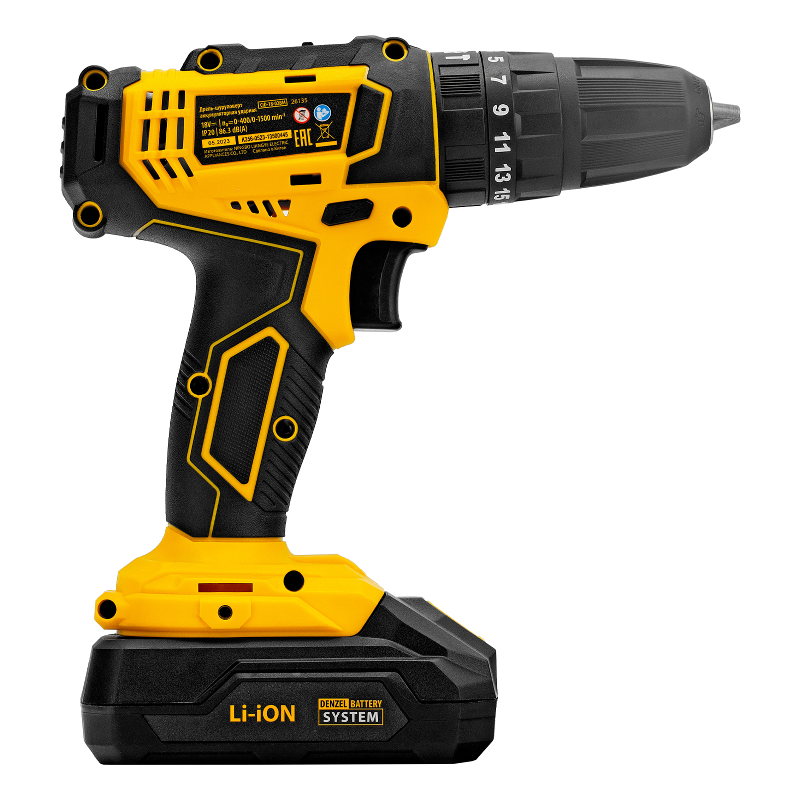 Дрель-шуруповерт аккумуляторная ударная CID-18-02BM, Li-Ion, 18 В, 2 акк. Denzel