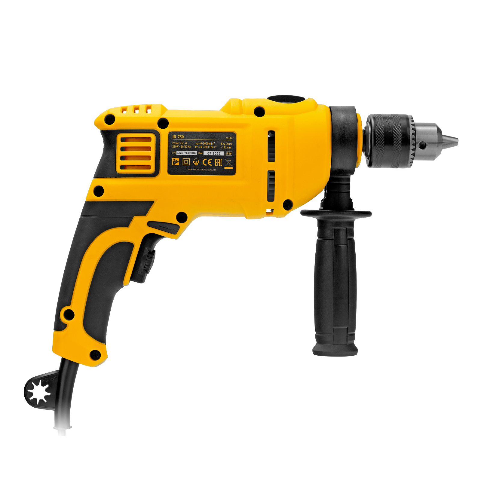 Дрель ударная ID-750, 750 Вт, 0-3000 об/мин, 48000 уд/мин Denzel