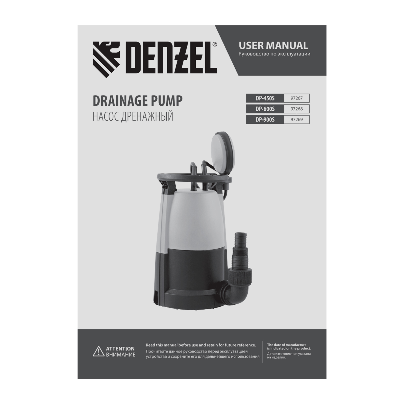 Дренажный насос для чистой и грязной воды DP-600S, 600 Вт, напор 7 м, 13000 л/ч Denzel