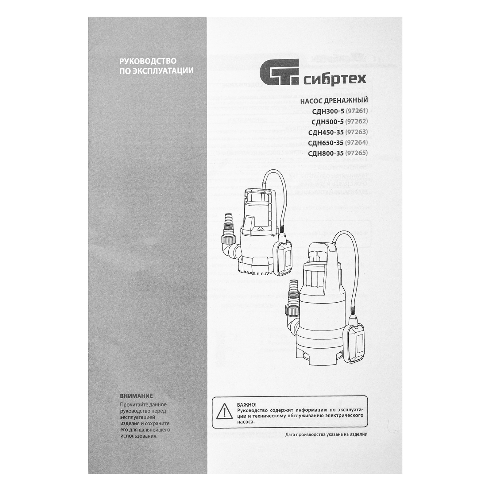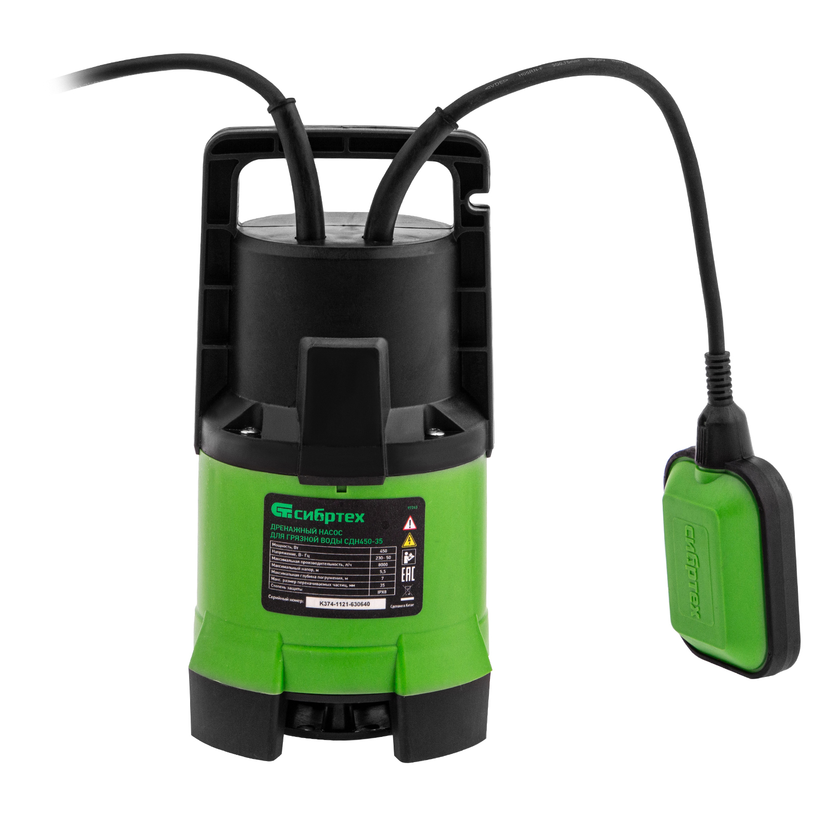 Дренажный насос для грязной воды СДН450-35, 450 Вт, напор 5.5 м, 8000 л/ч Сибртех