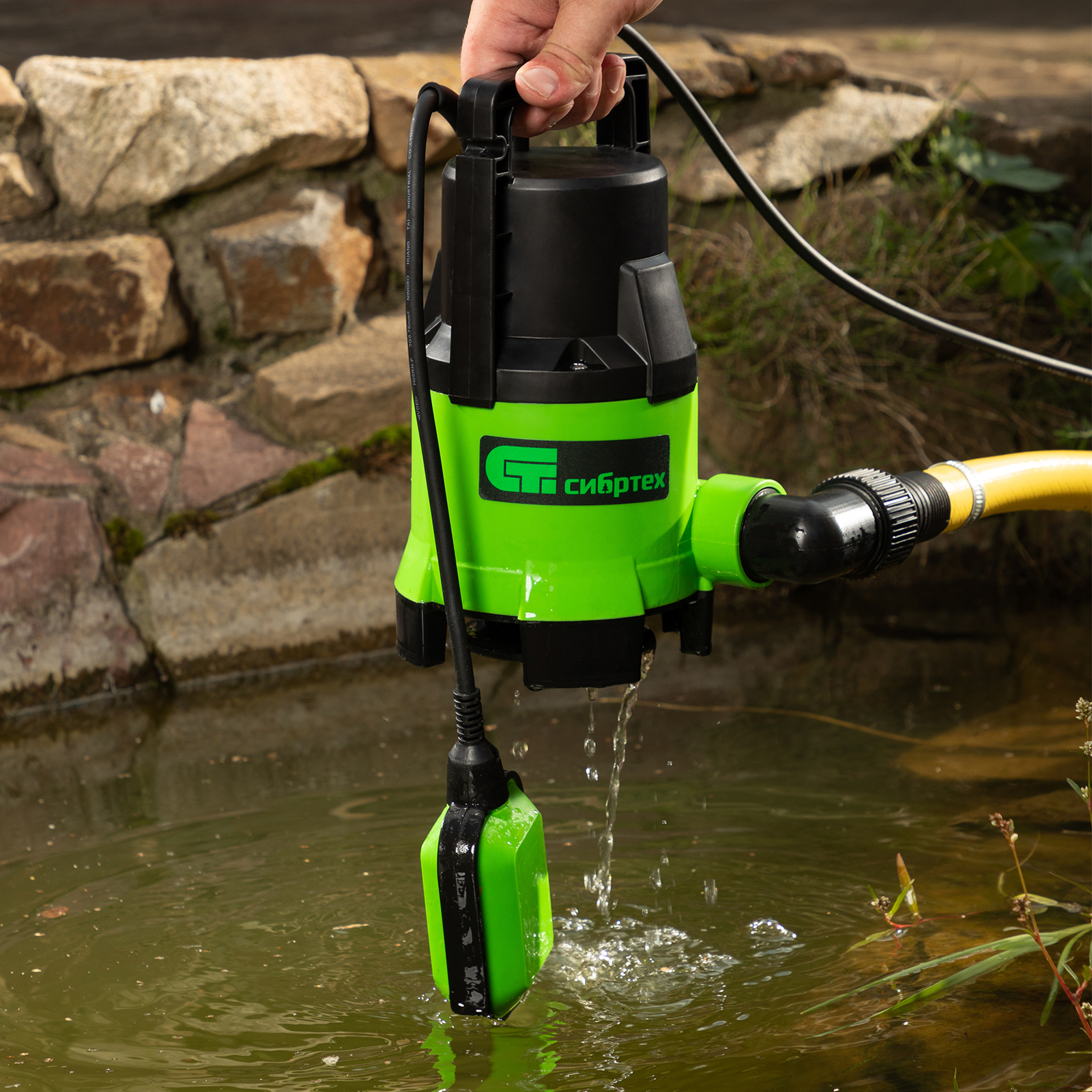 - Автономная работа — благодаря поплавковому механизму насос автоматически отключается и включается при достижении определенных уровней воды.