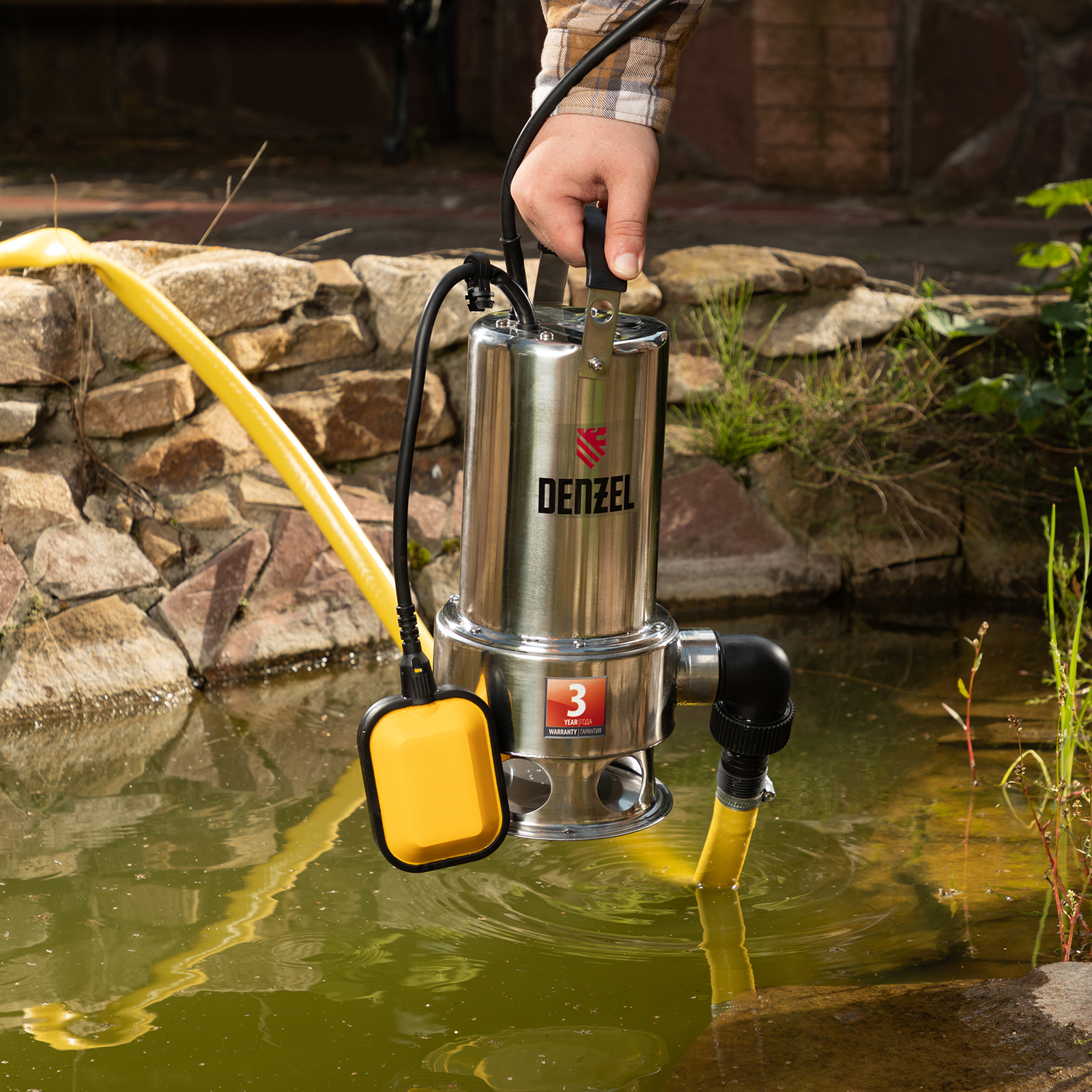 Дренажный насос DP1100X, 1100 Вт, подъем 11 м, 15500 л/ч Denzel