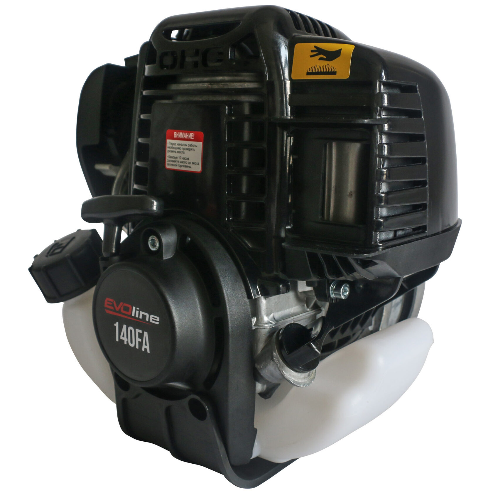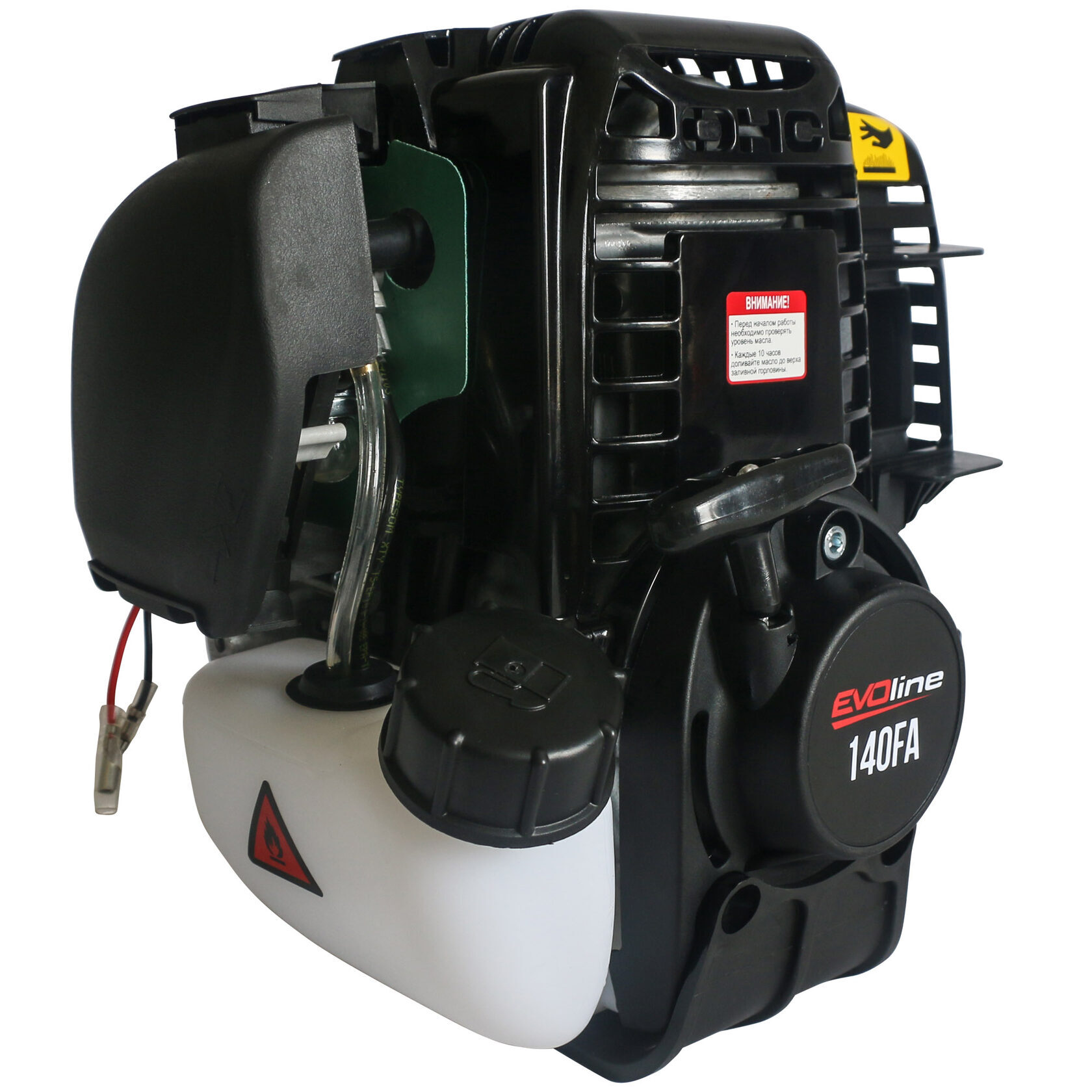 Четырехтактный двигатель объемом 37,7 см³ (аналог Honda GX35) выдает мощность 1,4 л.с., сочетая в себе преимущества экономичного расхода топлива с высокой производительностью. Увеличенный вал 78 мм с автоматическим сцеплением рассчитан на более серьезные нагрузки.
