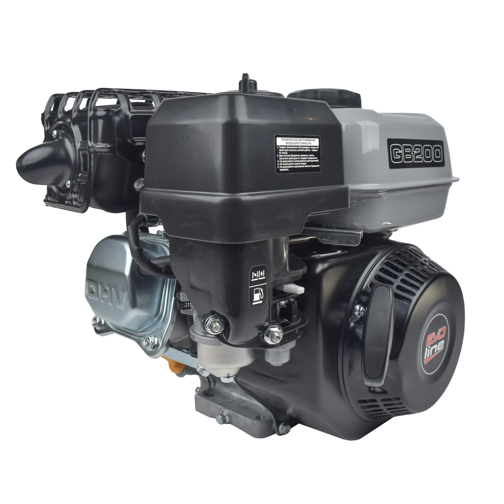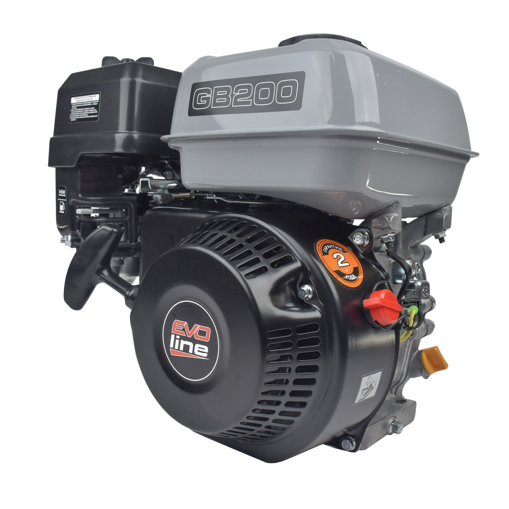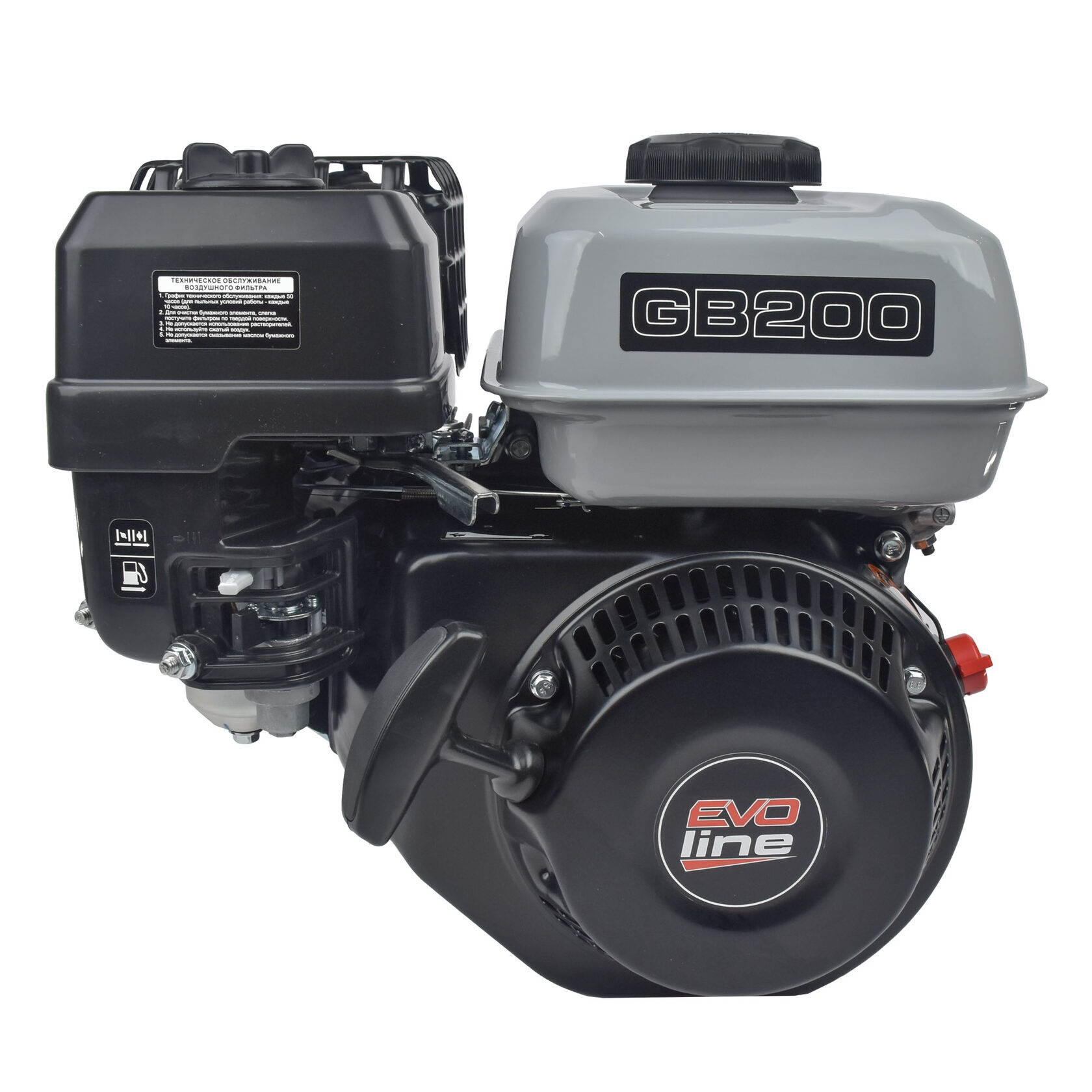 Бензиновый двигатель EVOline GB200 (Q-Тип) с рабочим объемом 196 см3 (6,5 л.с.). Этот двигатель является идеальной заменой для 2-х тактного двигателя на различном оборудовании, имеет легкий запуск и низкий уровень шума, высокое качество конструкционных материалов и компонентов, низкий расход топлива и масла.