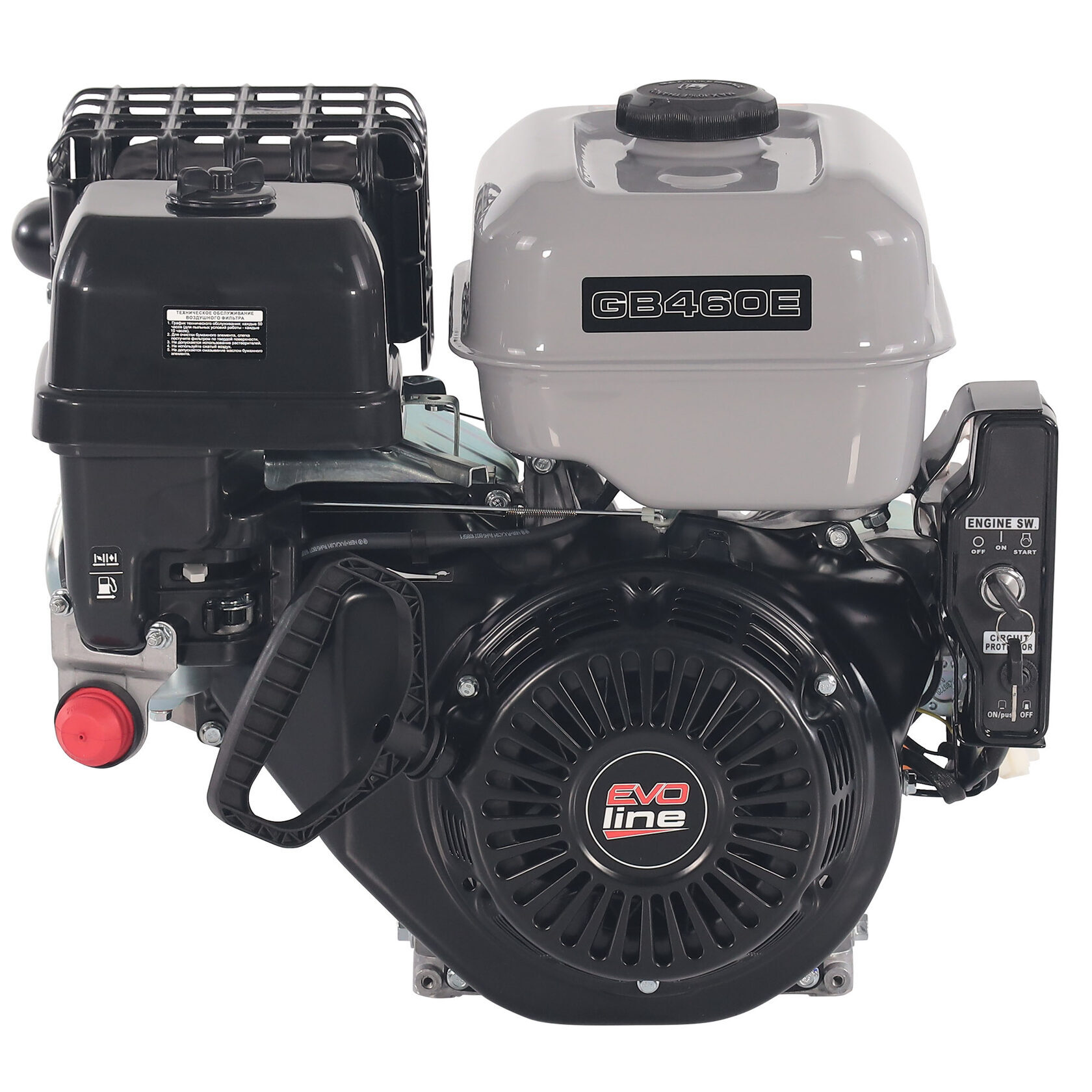 Версия двигателя GB 460 E дополнена системой электростартера. Сочетает высокую мощность 17,5 л.с., встроенный генератор для освещения и комфортный электрический запуск, что значительно повышает удобство эксплуатации тяжелого оборудования.