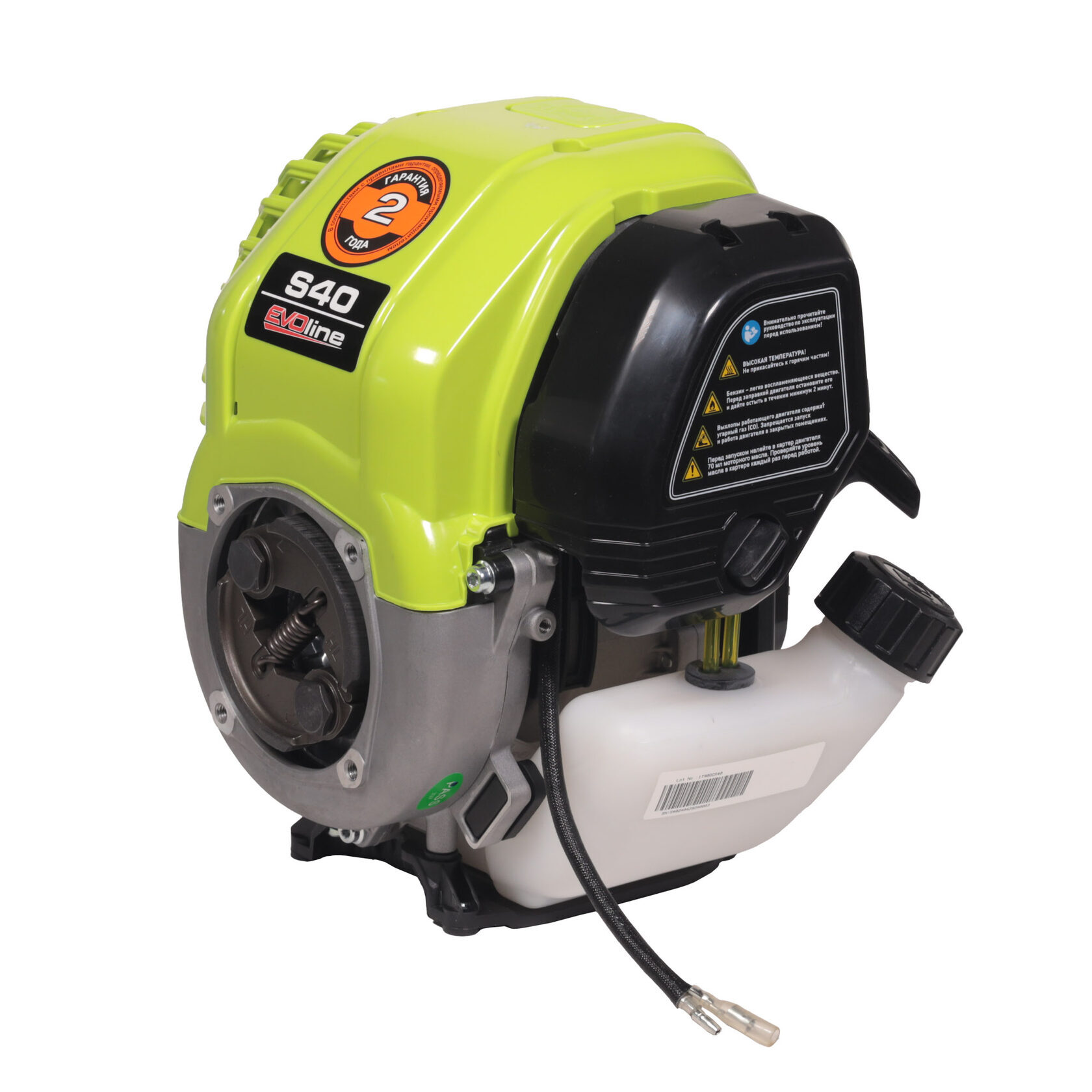 Двигатель EVOline S 40 используется с воздуходувами, опрыскивателями, мотокосами и прочим садовым оборудованием. Имеет легкий запуск и низкий уровень шума, высокое качество конструкционных материалов и компонентов, а также низкий расход топлива и масла. Оснащается колодками центробежного сцепления диаметром 78 мм.