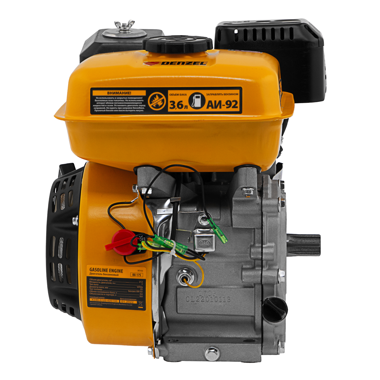 Двигатель бензиновый RX-17S, 7 л.с., 212 см3, горизонтальный вал шлиц 25 мм Denzel