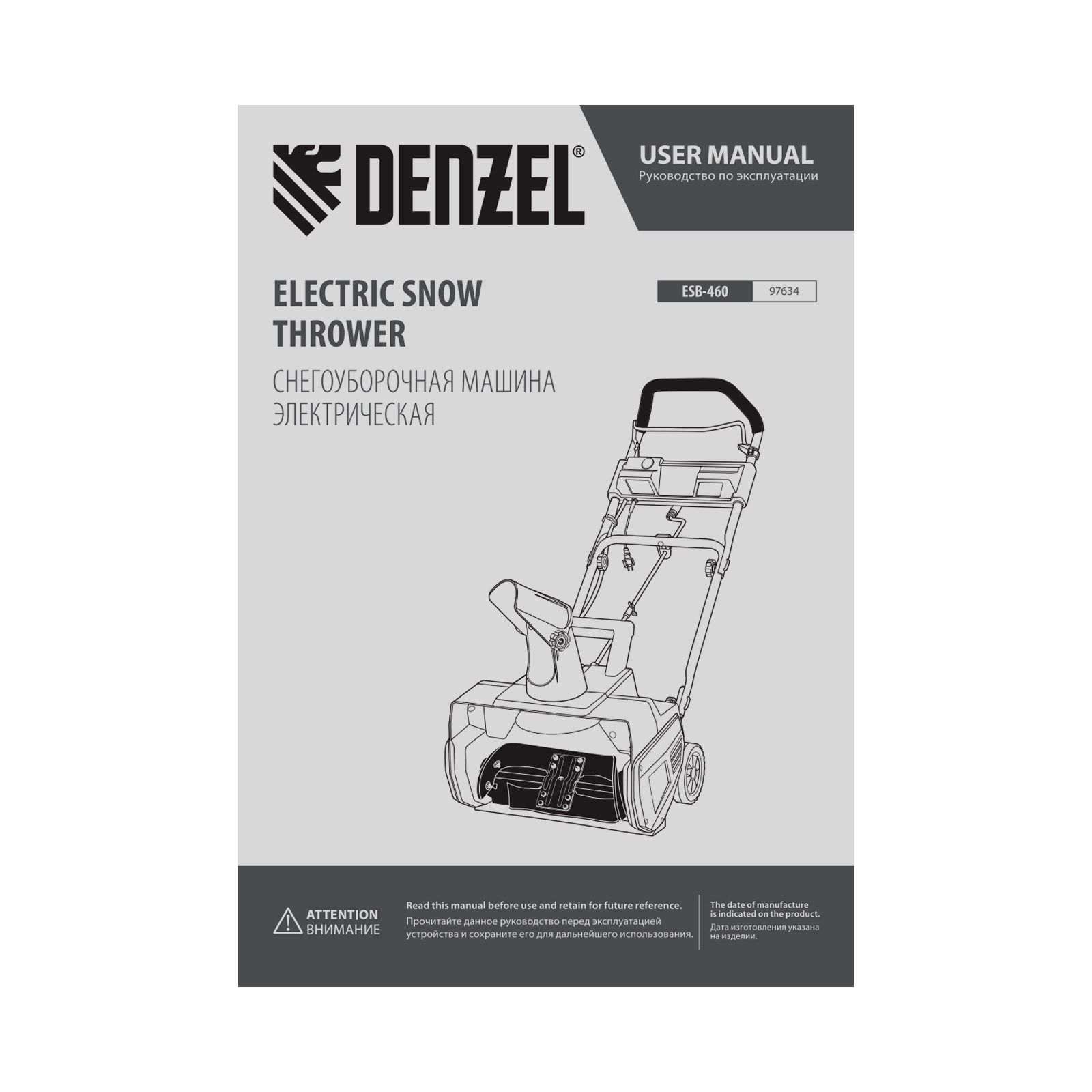 Электрическая снегоуборочная машина ESB-460, 2 кВт Denzel