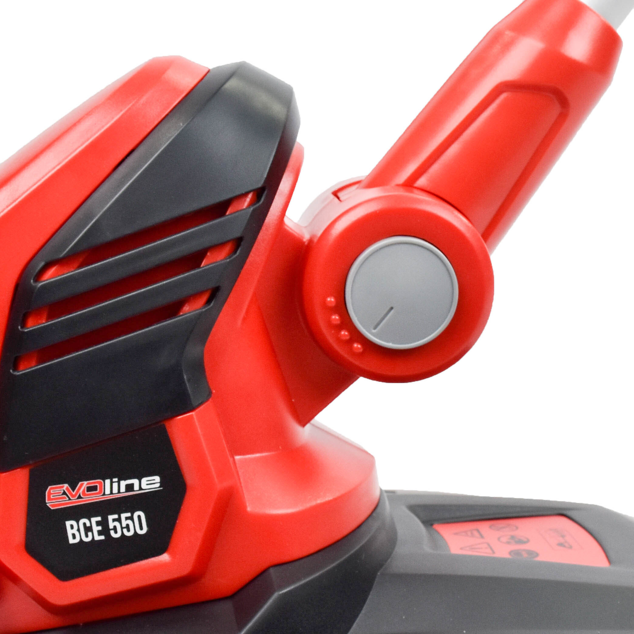 Электрический триммер EVOline BCE 550 – это мощный садовый инструмент, предназначенный для использования на даче или приусадебном участке. Он легок, удобен и прост в эксплуатации, что делает его идеальным выбором не только среди опытных пользователей, но и среди новичков. А за счет своих конструктивных особенностей (нижнего расположения двигателя) и небольшой мощности (0,55 кВт), является самой бюджетной моделью.
