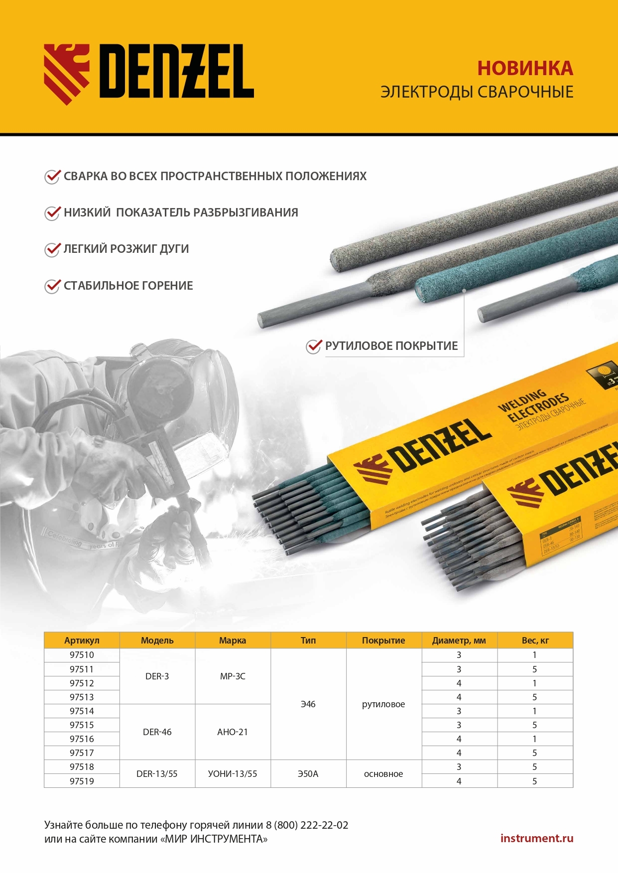 Электроды DER-46, диам. 3 мм, 1 кг, рутиловое покрытие Denzel