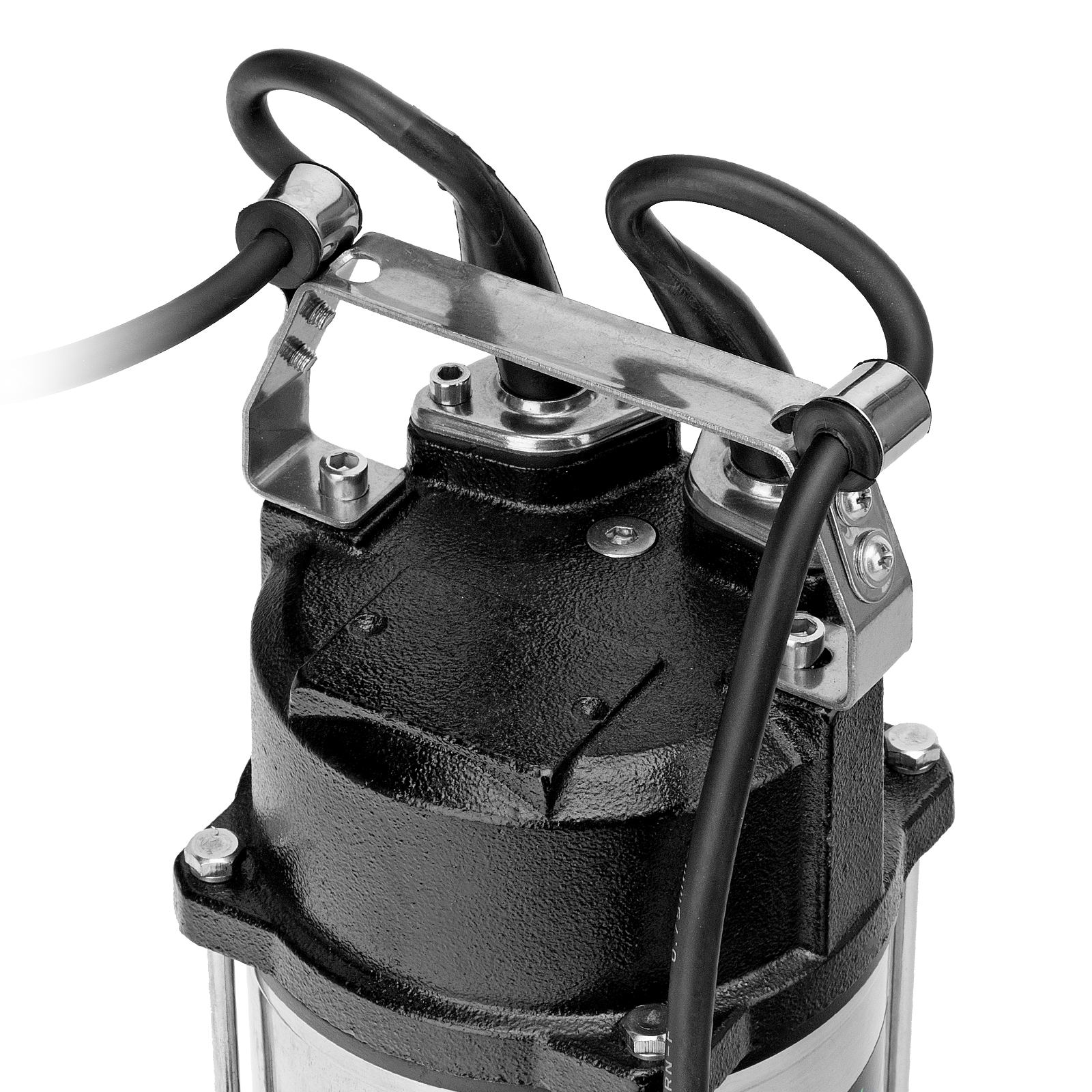 - Легкая установка — достаточно погрузить насос с помощью троса и установить в вертикальном положении.