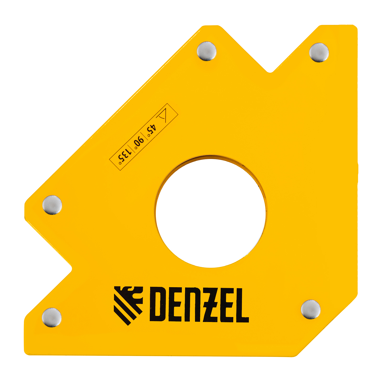 Фиксатор магнитный Denzel 97560 выдерживает усилие 75 LB (34 кг) и используется при проведении сварочных работ. Надежно фиксирует детали разного размера под углом 45°, 90° и 135° без риска их смещения или падения.