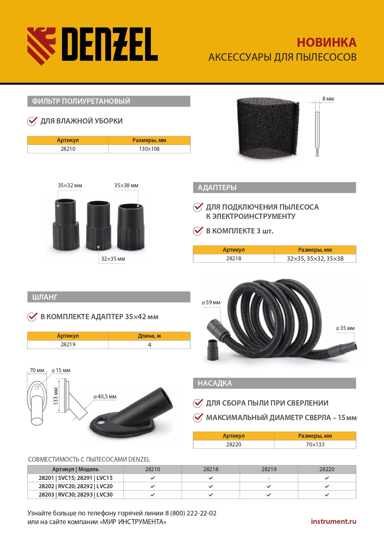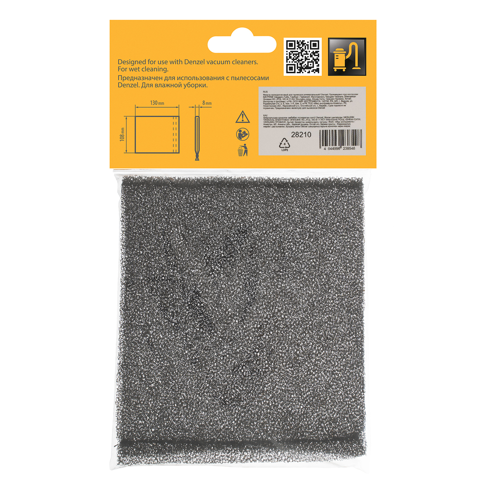 Универсальный полиуретановый фильтр Denzel 28210 предназначен для использования с пылесосом в режиме сбора воды. Совместим с моделями Denzel 28201, 28202, 28203, 28291, 28292, 28293.