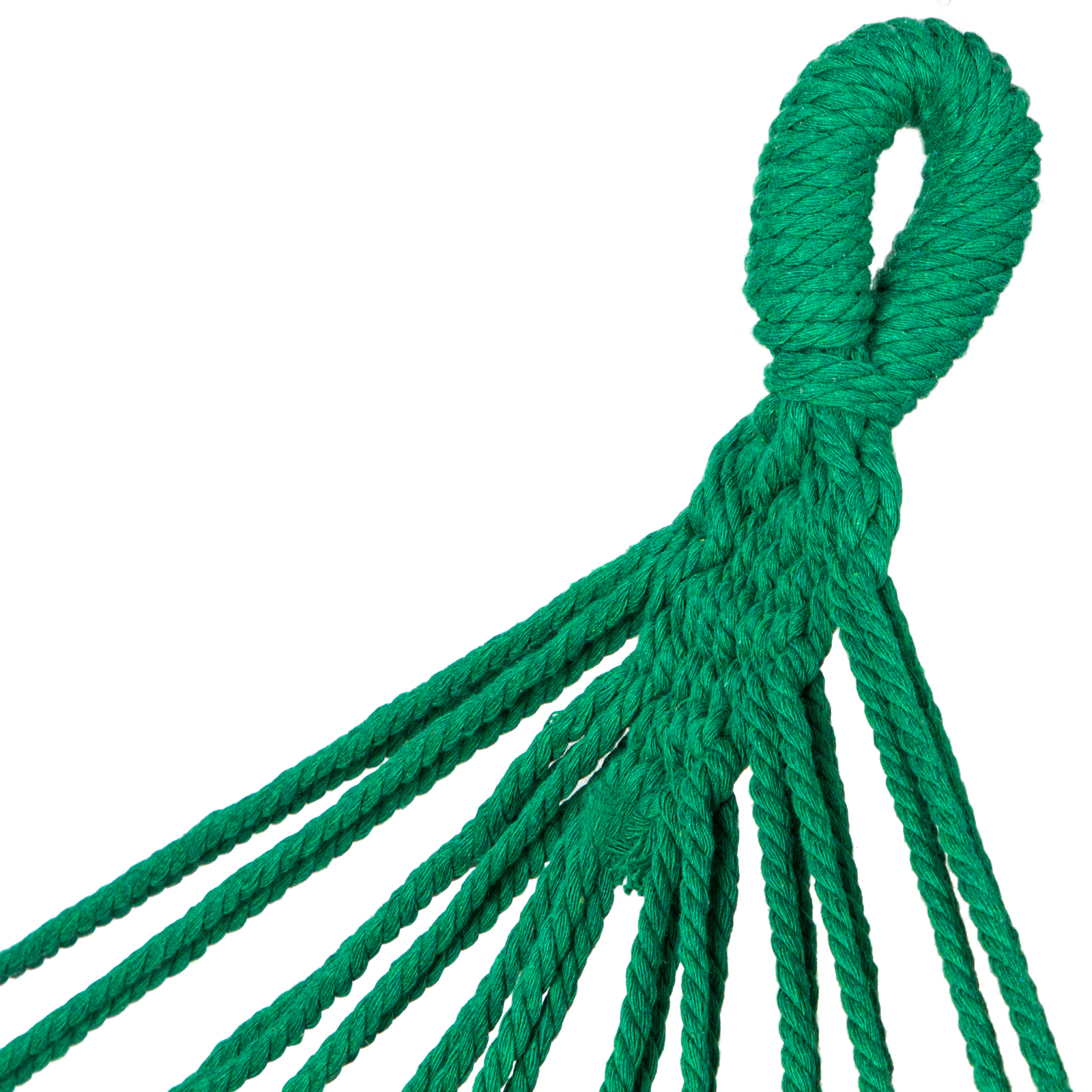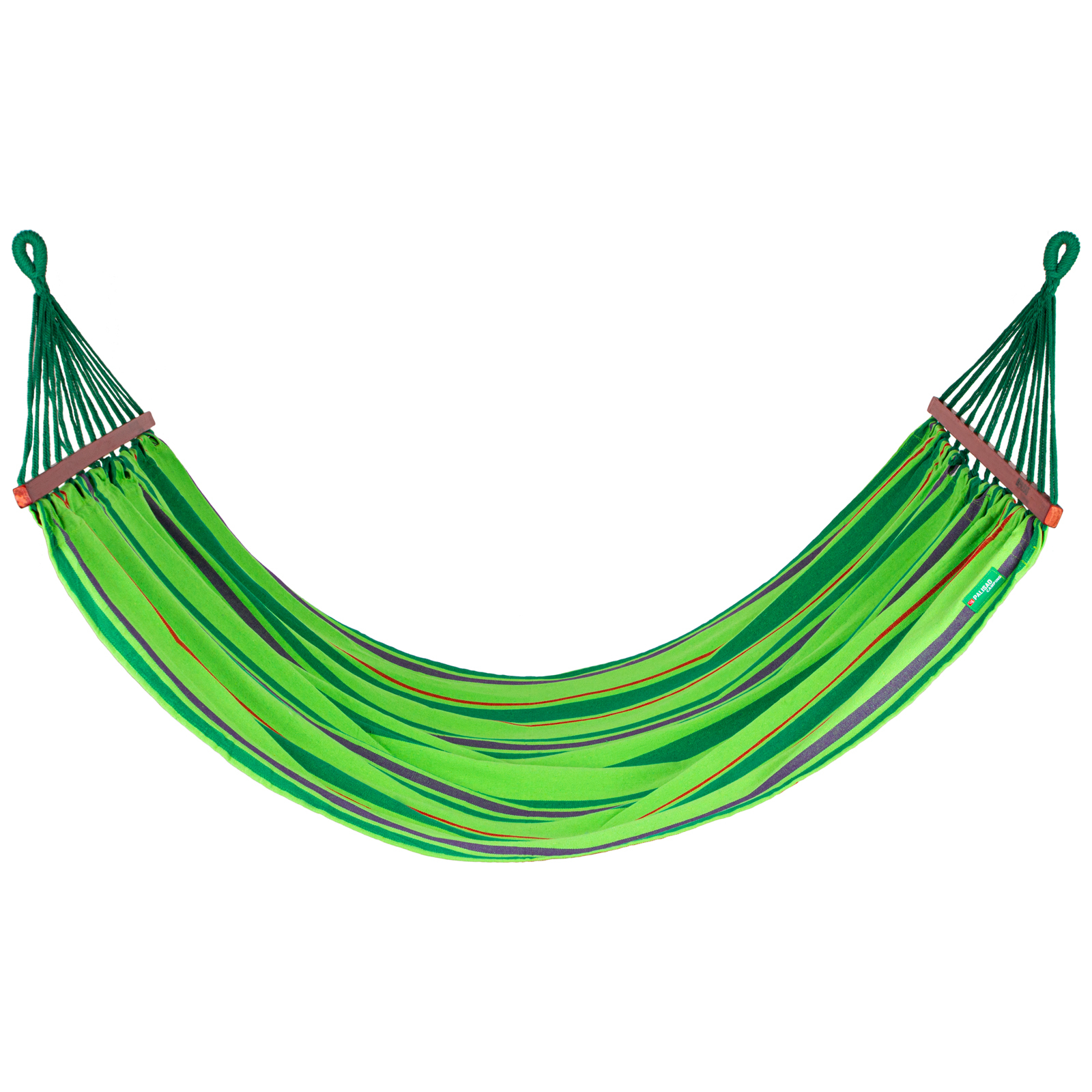 - Экологичность — гамак из 100% хлопка безвреден для здоровья и позволяет телу дышать.
