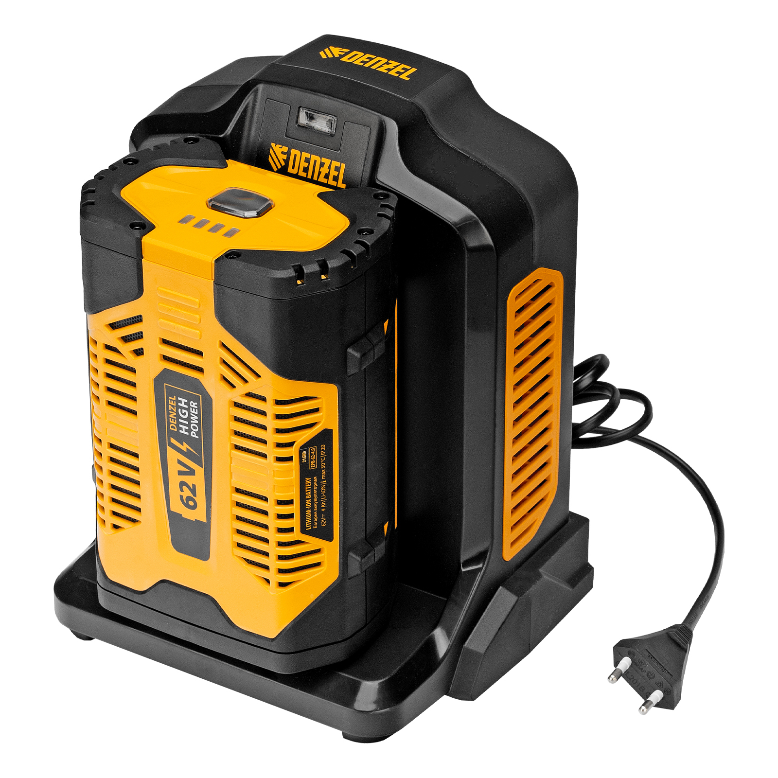 Инновационная аккумуляторная платформа Denzel High Power 62V разработана специально для инструмента большой мощности, гарантирует высокую производительность и продолжительную работу. Интеллектуальная система распознавания типа нагрузки оптимизирует расход заряда. Аккумулятор имеет разъем USB, поэтому его можно использовать как Power Bank: заряжать смартфон, планшетный компьютер и другую мобильную технику.