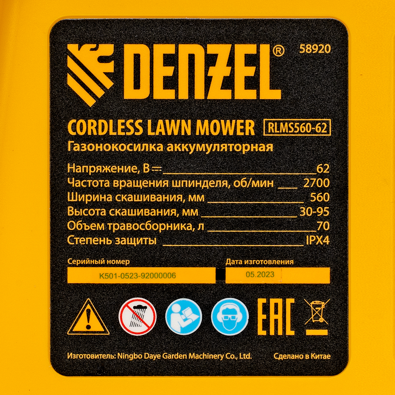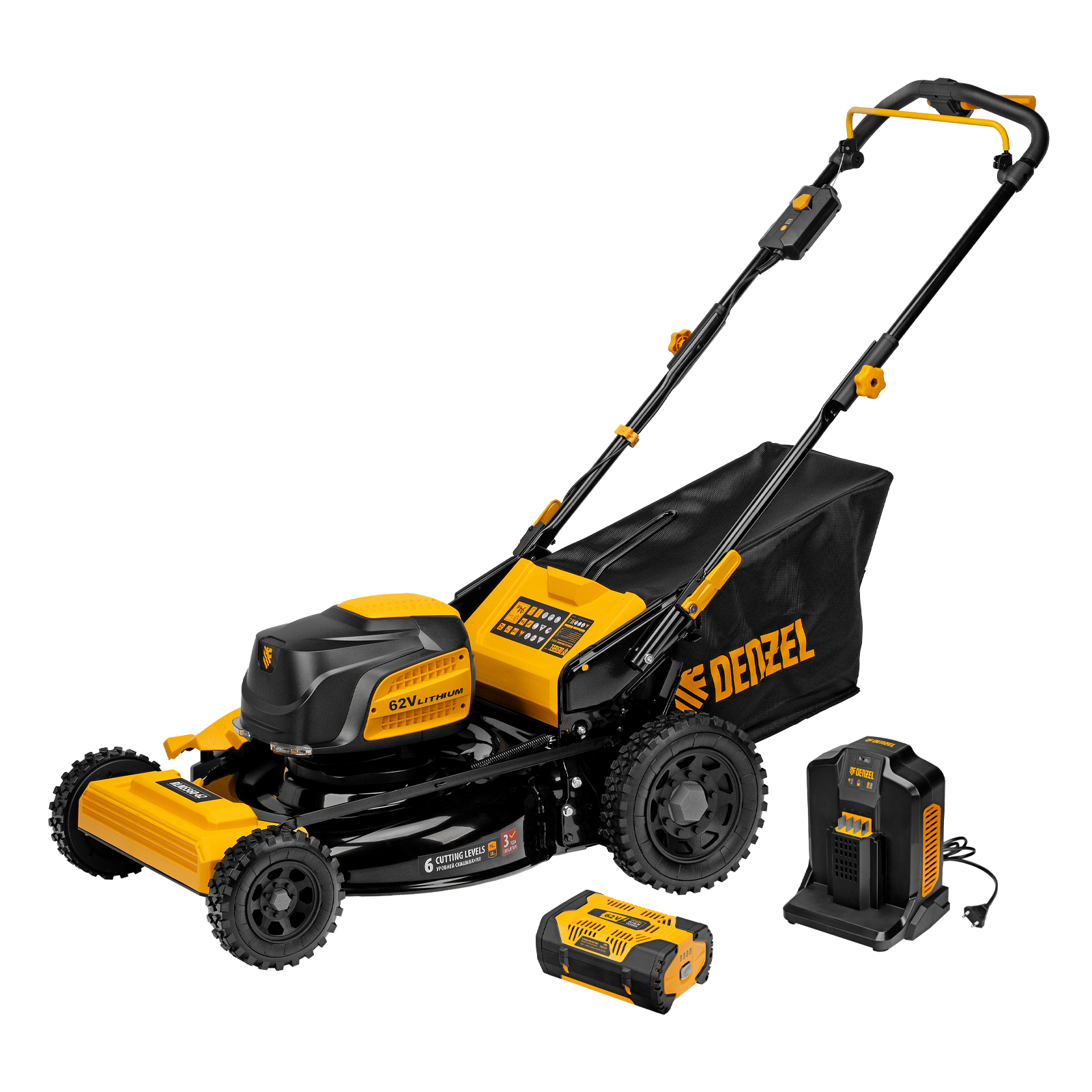 - Универсальность — аккумулятор подходит к любому инструменту, работающему на платформе Denzel High Power 62V.