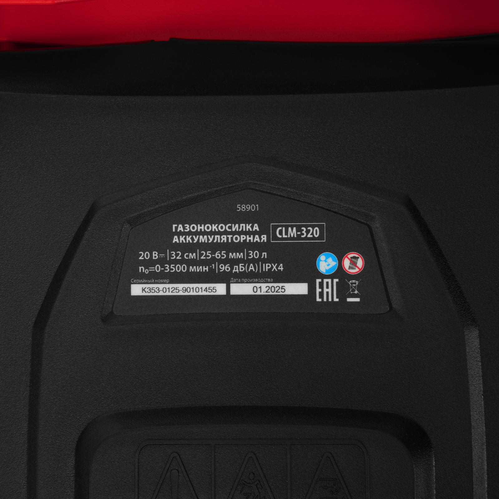 Газонокосилка аккумуляторная бесщеточная CLM-320, 320 мм, травосб. 30 л, Li-Ion, 20 В MTX