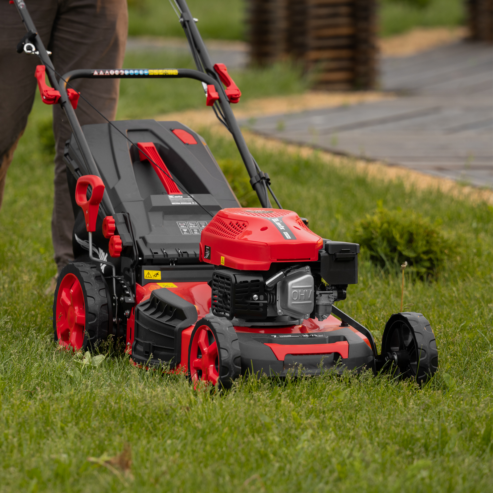 Бензиновая газонокосилка MTX GL51SP-K 58838 с двигателем объемом 170 см³, приводом на колеса и травосборником объемом 50 л обеспечивает ширину скашивания 51 см. Предназначена для кошения травы на газонах и лужайках, оптимальна для ухода за приусадебным участком небольшой площади. Высота скашивания регулируется в диапазоне 25-75 мм (предусмотрено 7 уровней) — можно привести в порядок спортивную площадку, лужайку для отдыха и т.д. Четырехтактный двигатель мощностью 4,5 л.с. позволяет эффективно решать поставленные задачи.