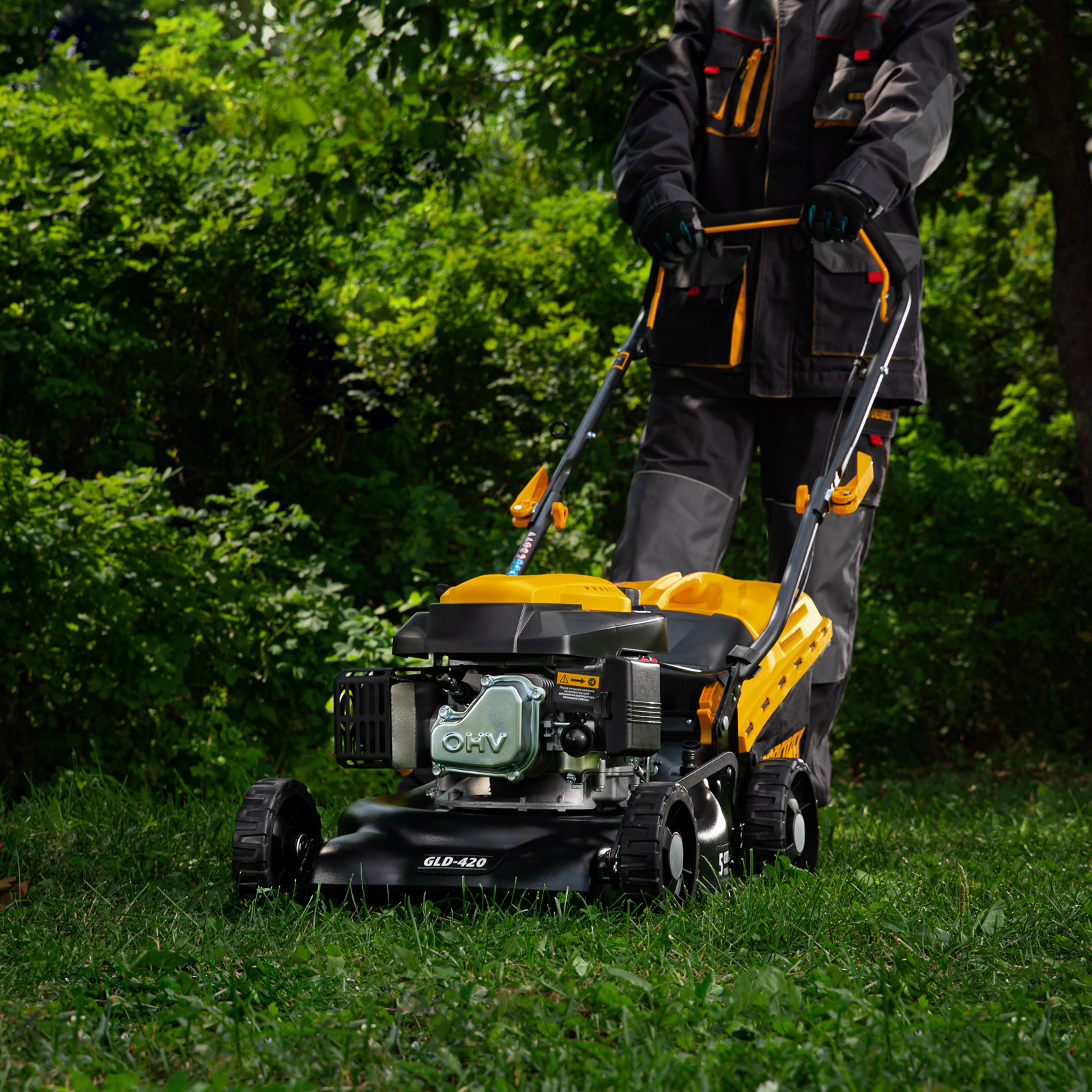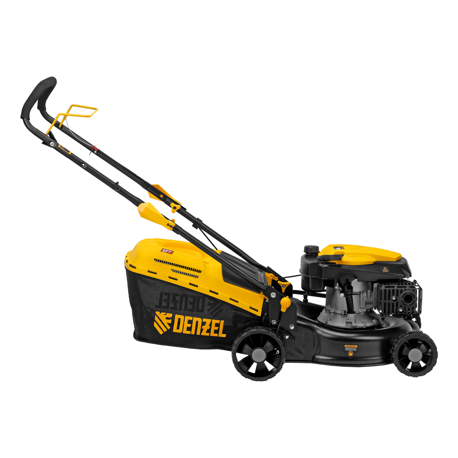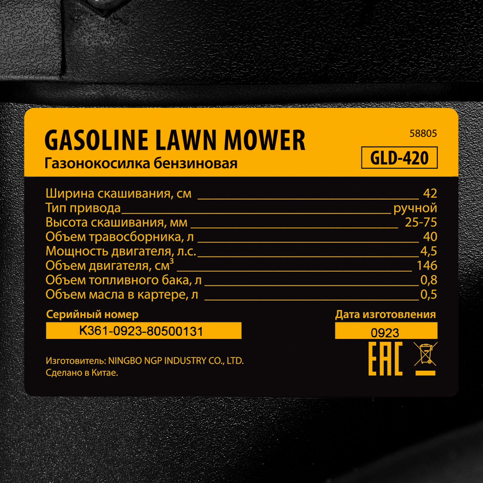 Бензиновая газонокосилка Denzel GLD-420 58805 с объемом двигателя 146 см куб., травосборником на 40 л, с шириной прохода 42 см, идеально подходит для благоустройства дачных территорий, огородов и ровных земельных участков. Ширина скашивания за один проход 42 см позволяет обрабатывать 1500 кв.м за 1 час. В зависимости от нагрузки, дозаправка топливного бака требуется через 40-60 минут. Мощность двигателя данной модели составляет 4,5 л.с.,Для создания идеальной дорожки, площадки для спортивных игр или другого типа покрова в газонокосилке предусмотрено 5 уровней скашивания. Поворачивая рычаг регулировки высоты покоса, Вы сможете самостоятельно выбрать желаемое значение в диапазоне 25-75 мм. Косилка способна срезать даже густую траву и стебли, потому что оснащена закаленным до твердости 45 HRC ножом.