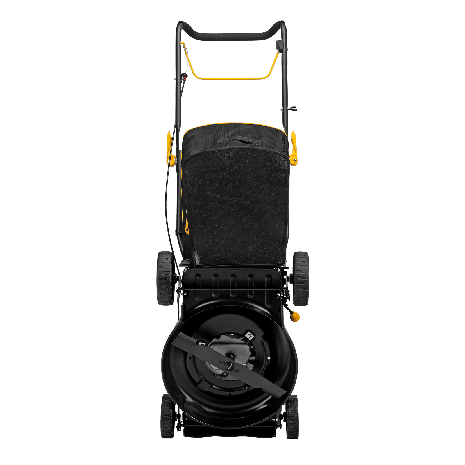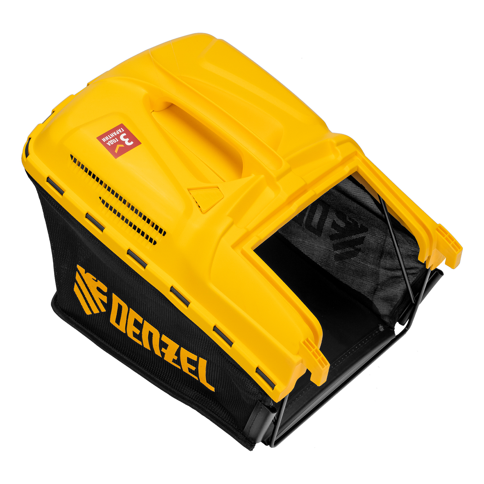 - Аккуратный сбор травы и легкая очистка контейнера — компактный травосборник из ткани и пластика на 40 л просто опустошается и очищается без усилий.