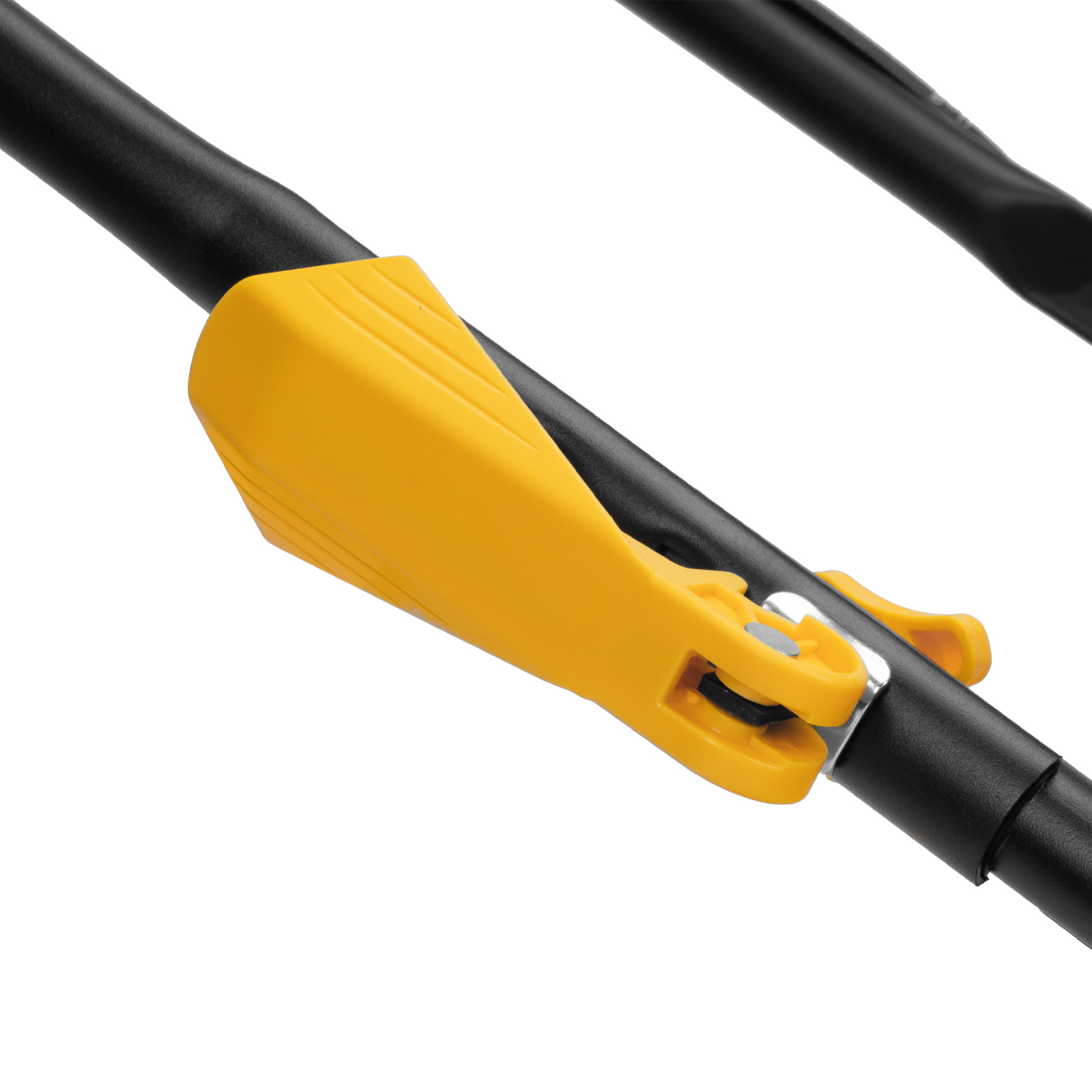 - Быстрозажимные эксцентриковые фиксаторы — рукоятка складывается за считанные минуты, поэтому подготовить косилку к хранению не составит труда.