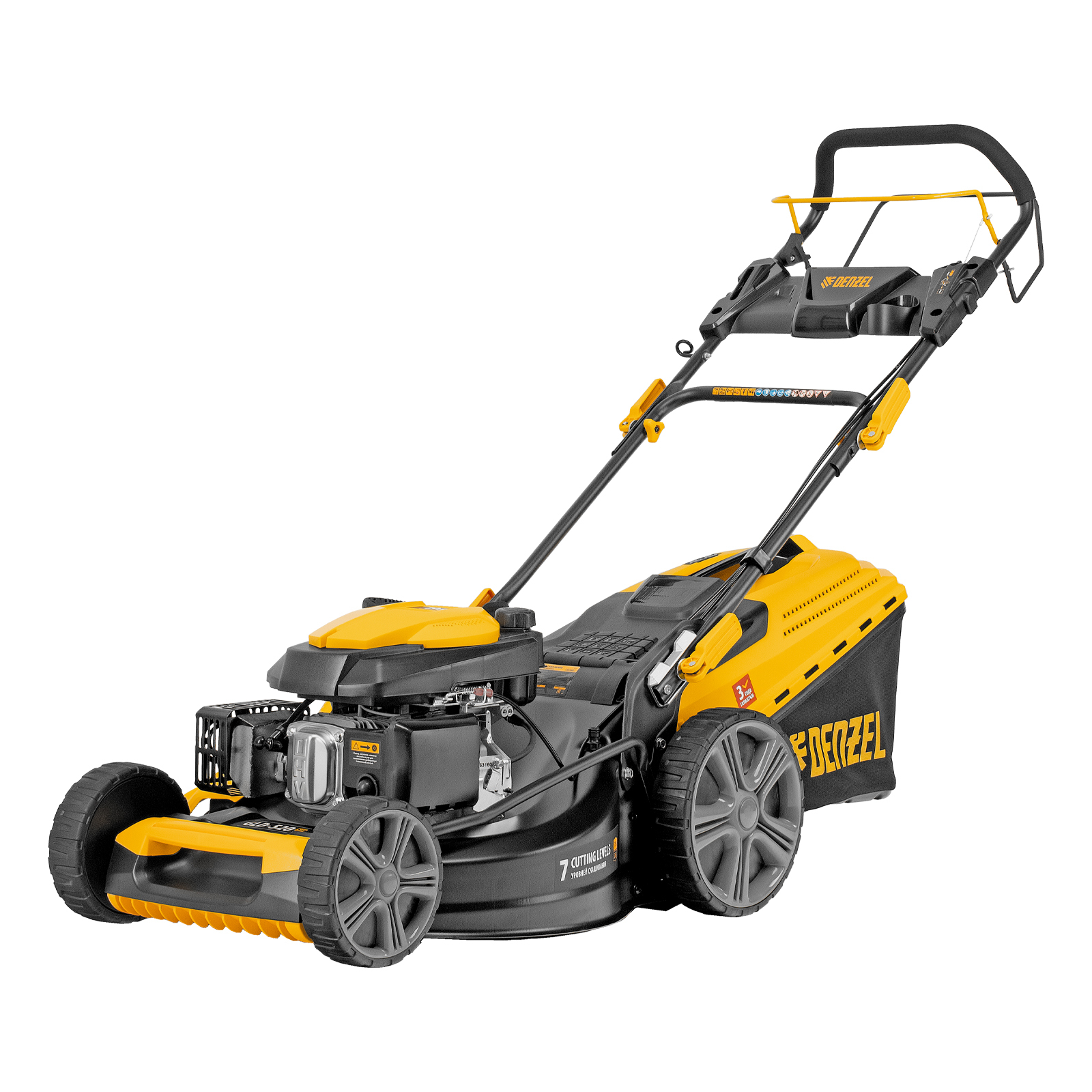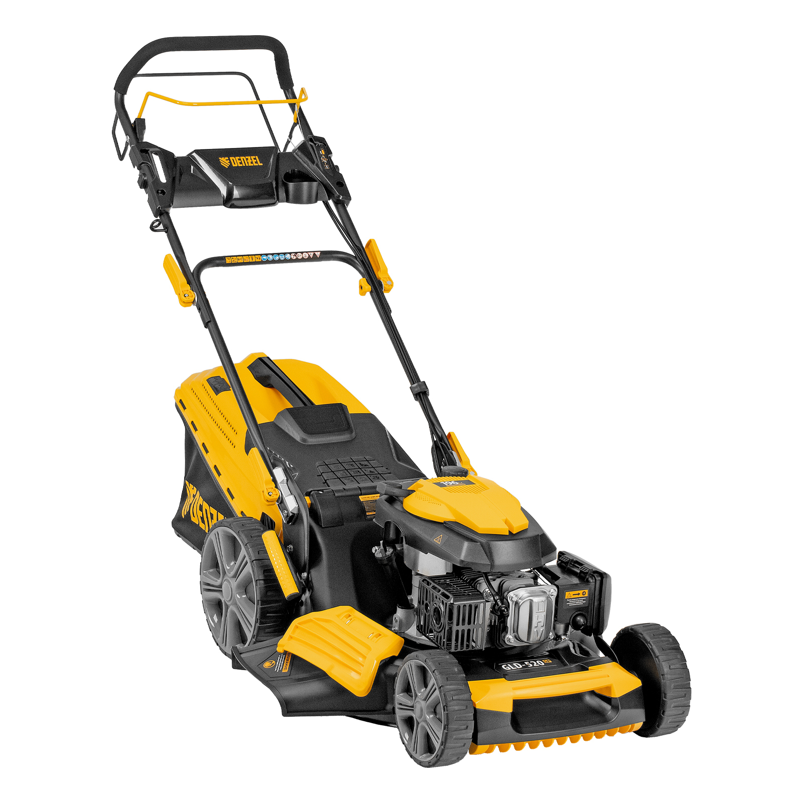 Газонокосилка бензиновая GLD-520SP, 196 куб.см, ширина 52 см, привод, 7 уровней,травосборник 60 л Denzel