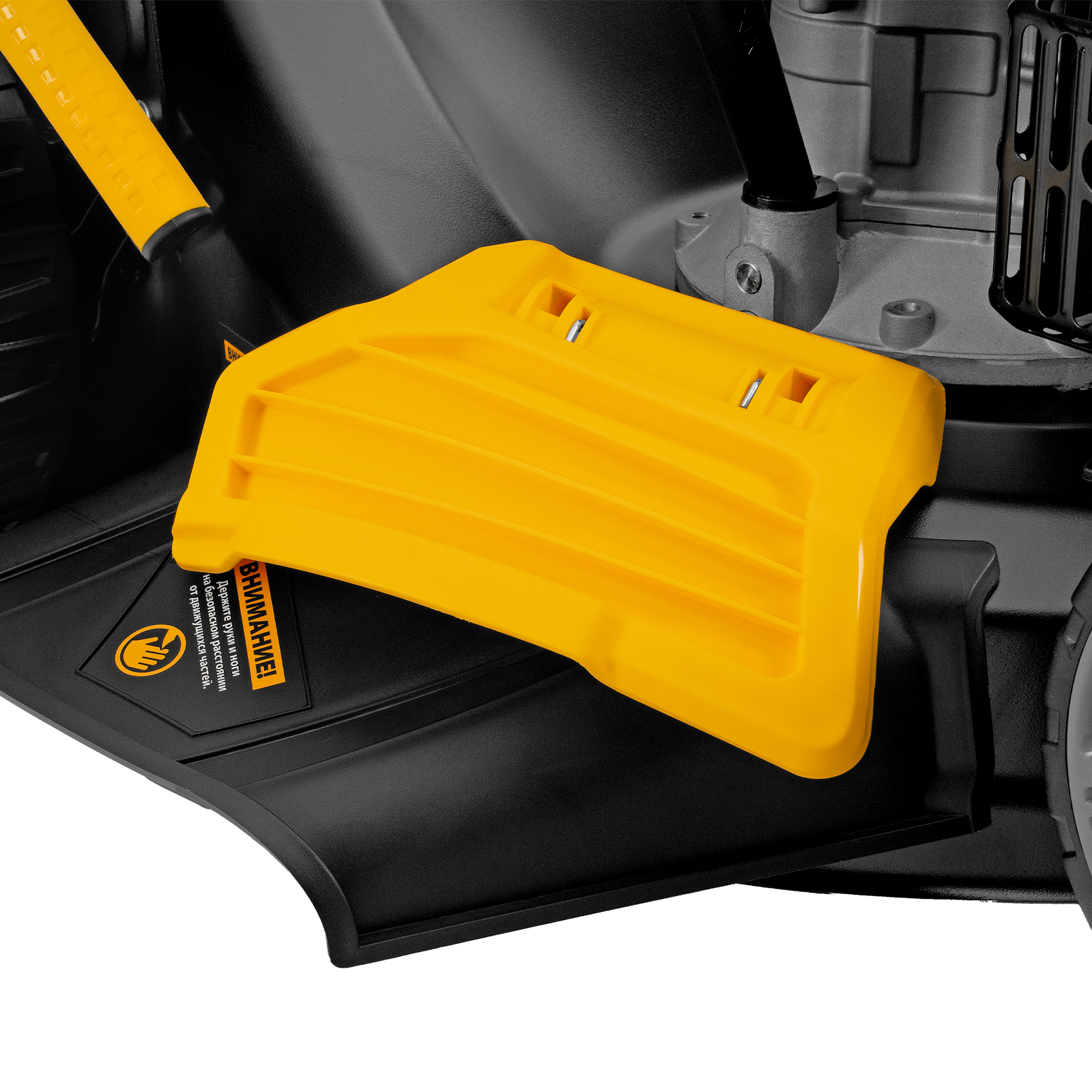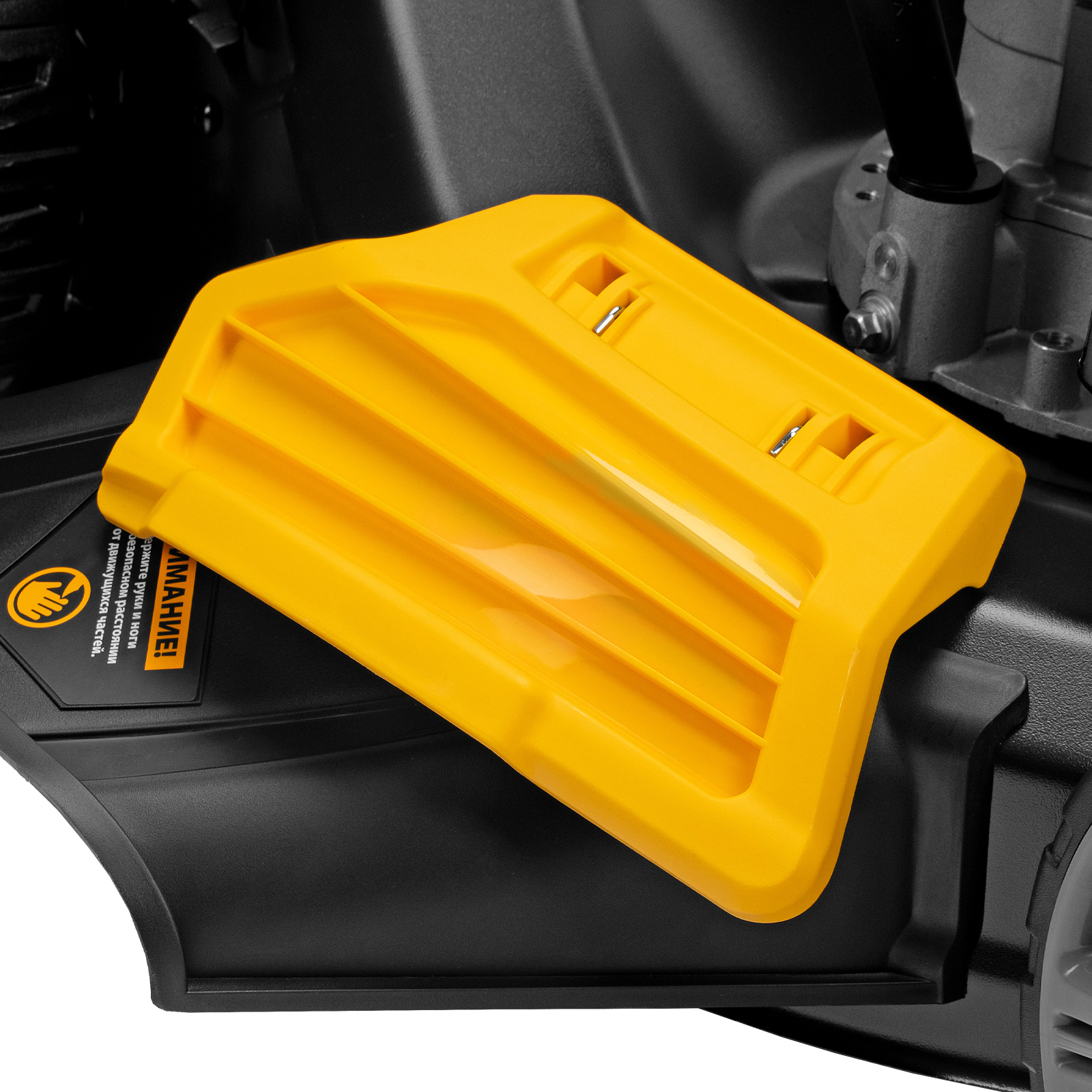 - Продуманная конструкция и стильный дизайн — оптимизированная форма деки способствует лучшему всасыванию травы, а матовая краска придает эффектности.