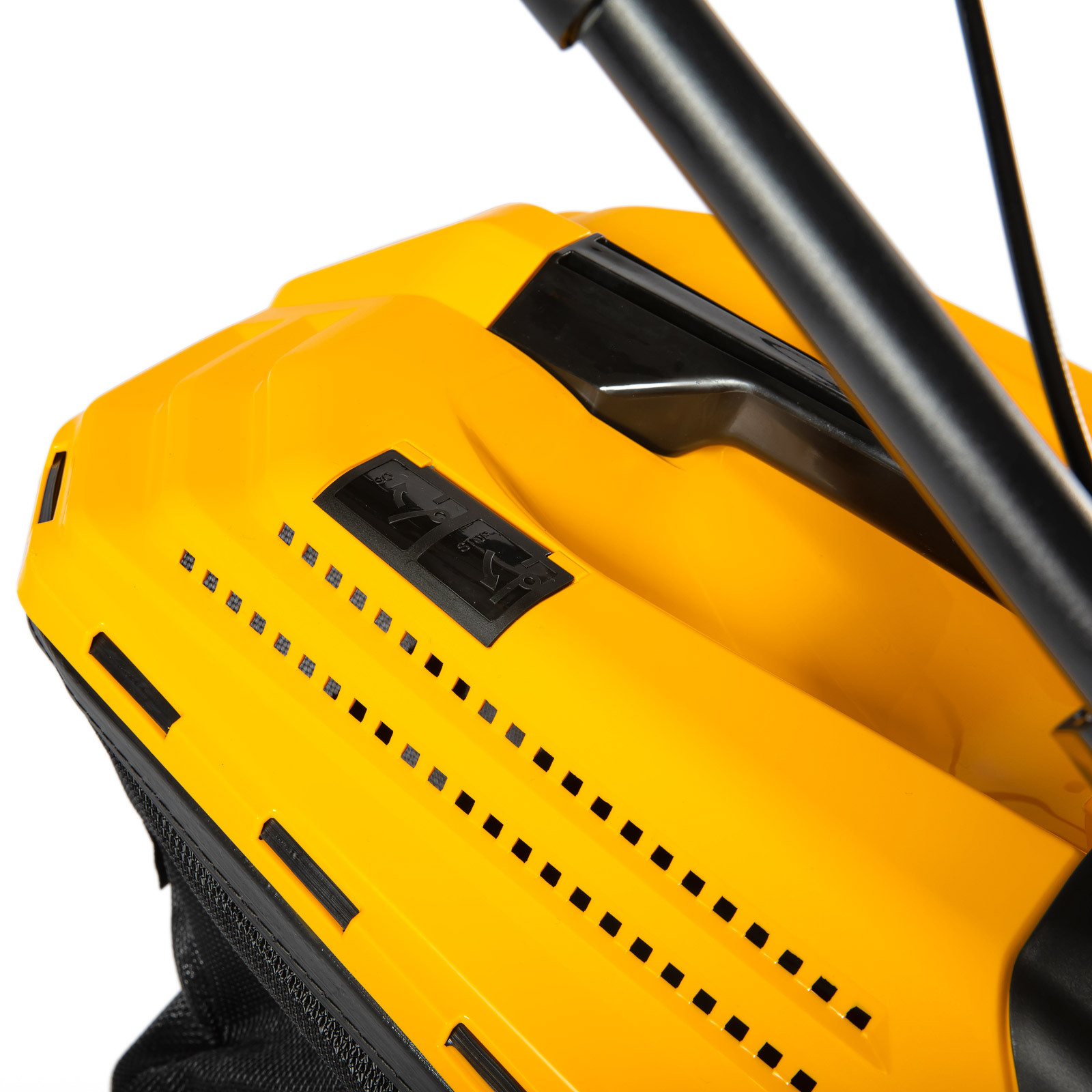 - Регулировка скорости — можно переключаться с высоких оборотов на низкие для срезания густой травы или обработки маленького участка газона.