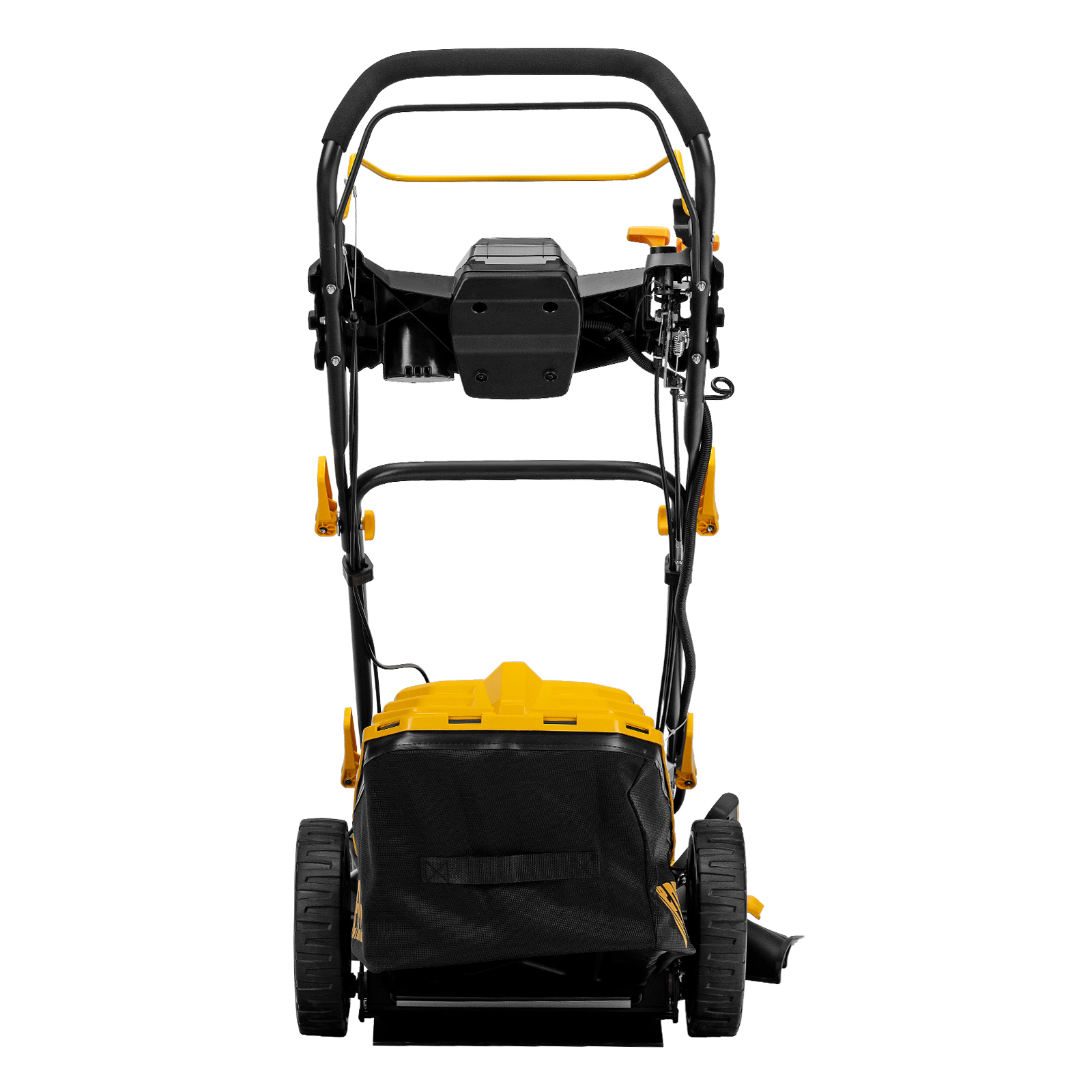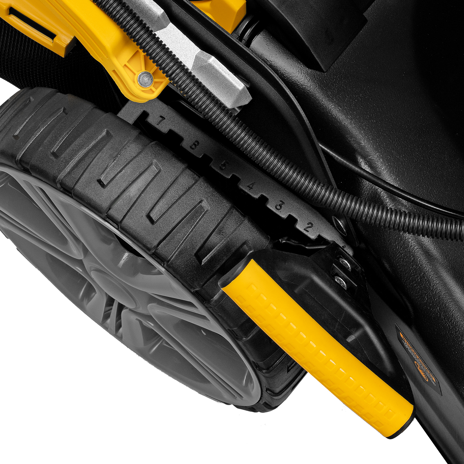 - Аккуратный сбор травы и легкая очистка контейнера — компактный травосборник из ткани и пластика на 60 л не требует частого опустошения и очищается без усилий.