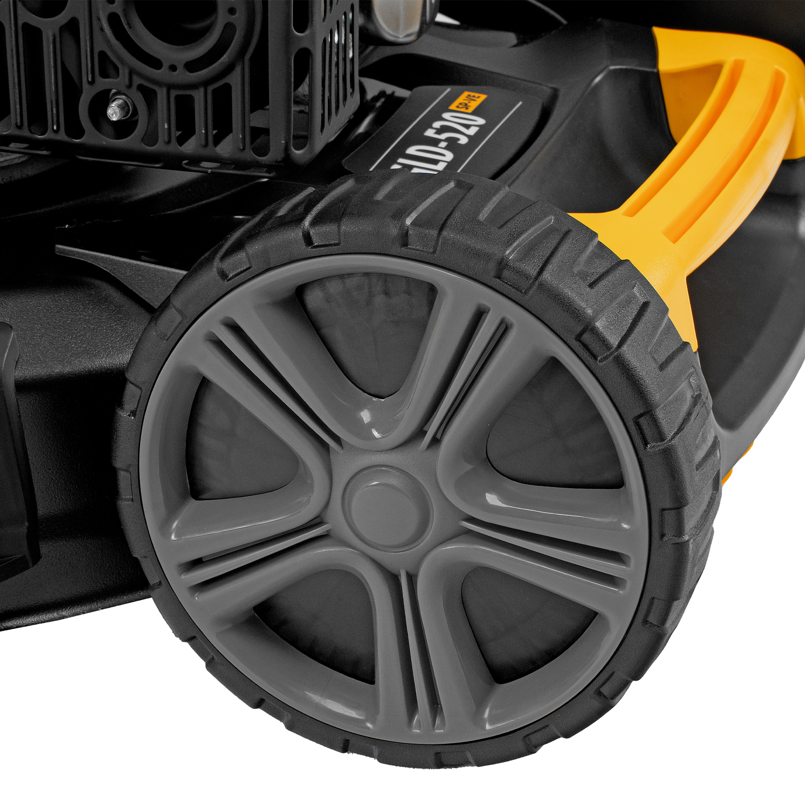 - Привод на колеса — достаточно только направлять косилку, ее не нужно постоянно толкать.