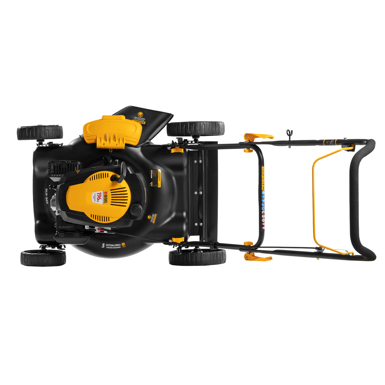 - Удобный выбор режима работы — за счет отсутствия травосборника переключаться между мульчированием и боковым выбросом проще, т.к. не нужно устанавливать заглушки.