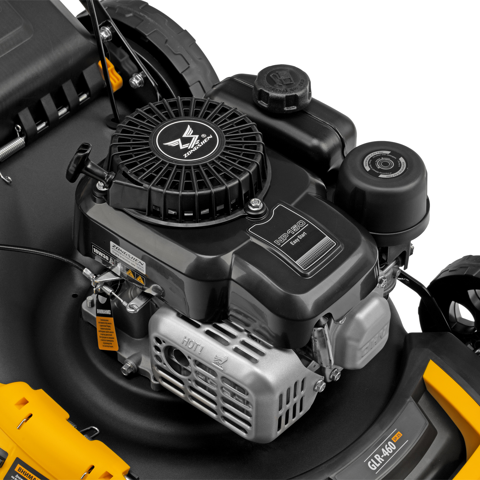 Бензиновая газонокосилка Denzel GLR-460SP-ZS 58824 с приводом на колеса и травосборником вместимостью 65 л, с надежным и экономичным 4-тактным двигателем объемом 149 см3, обеспечивает ширину прохода 46 см. Предназначена для стрижки газонов и скашивания травы в саду, будет полезна для ухода за дачным участком или придомовой территорией. Высота скашивания легко регулируется одним рычагом в диапазоне 25-70 мм (предусмотрено 8 уровней).