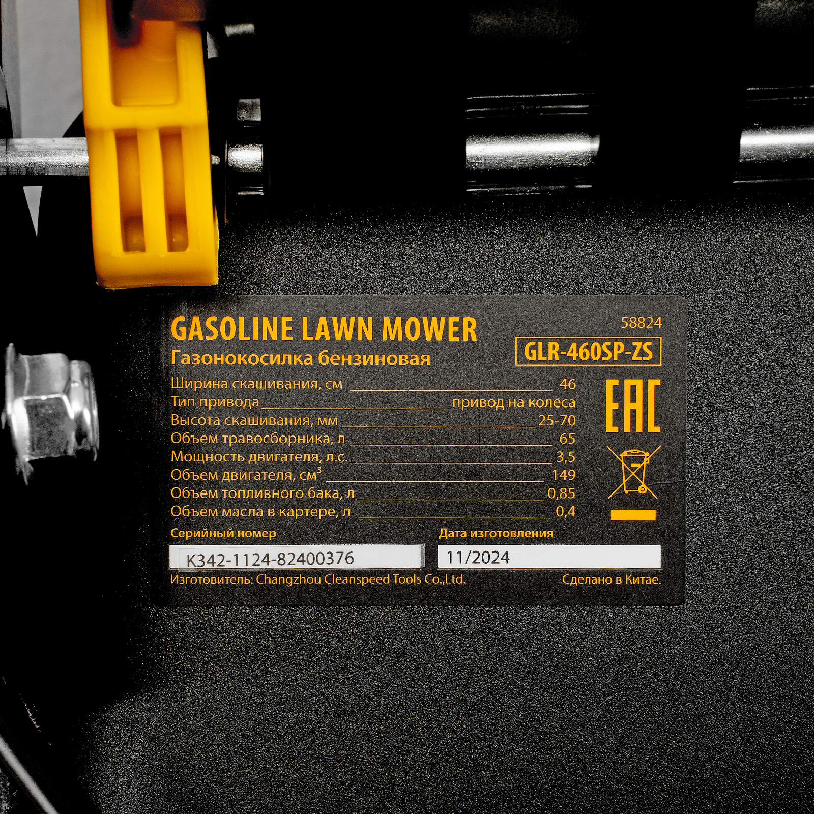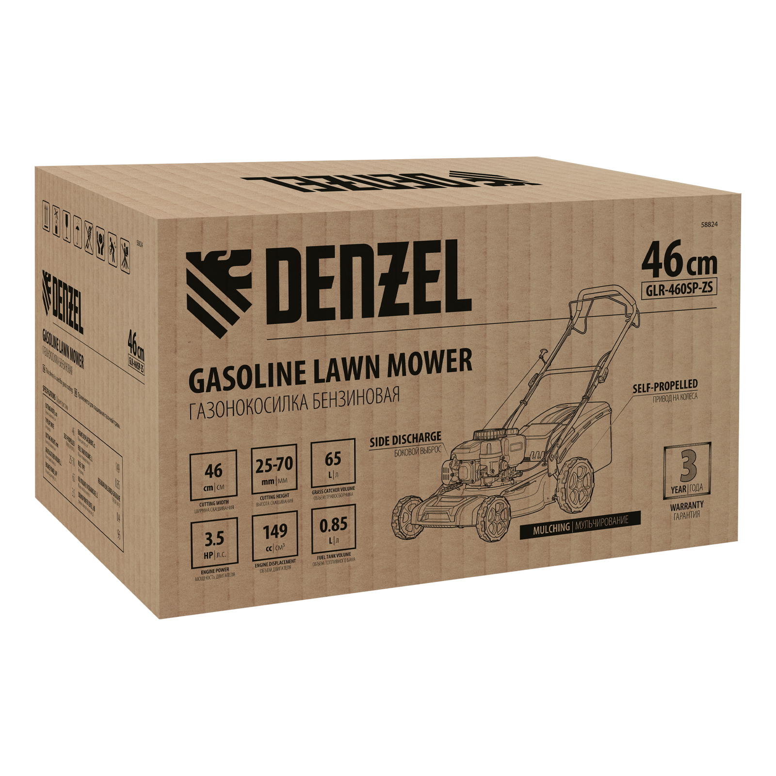 Газонокосилка бензиновая GLR-460SP-ZS, 149 см3, ширина 46 см, привод, травосборник 65 л Denzel
