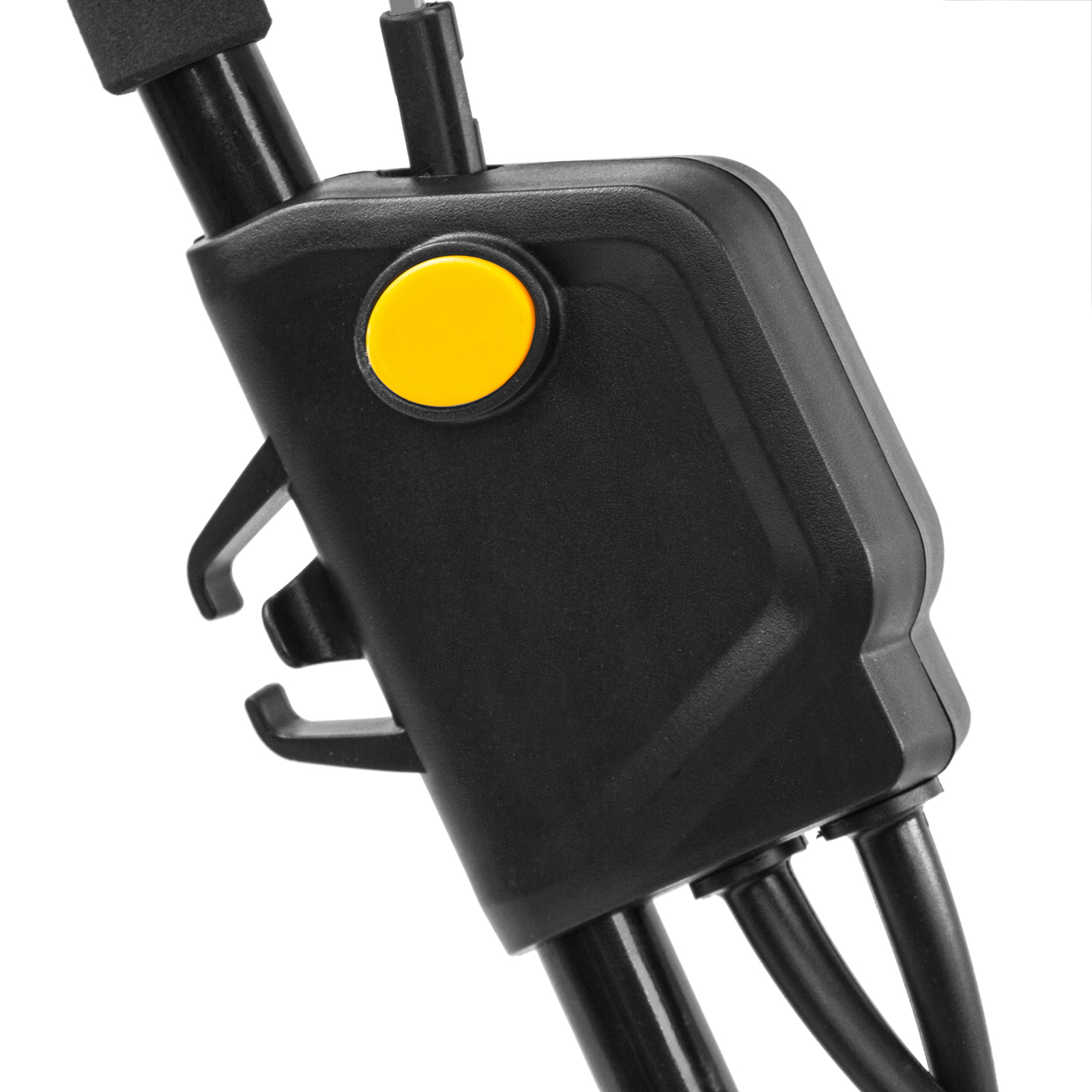 - Комфортная эксплуатация — управление с помощью скобы позволяет держать руки в любом месте рукоятки, также допускается управление одной рукой.