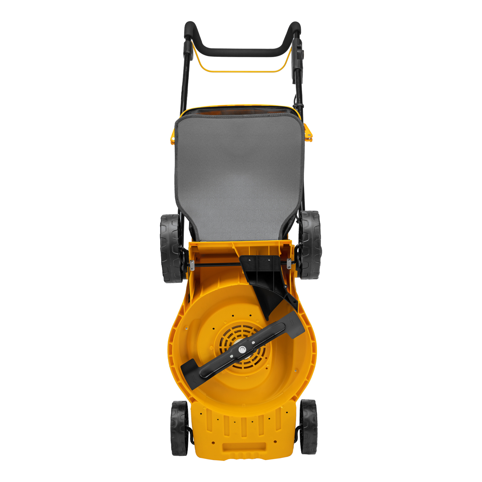 - Комбинированный травосборник — емкость на 40 л из прочного РР пластика и мягкого сетчатого материала легко очищать, а также удобно хранить в сложенном виде.