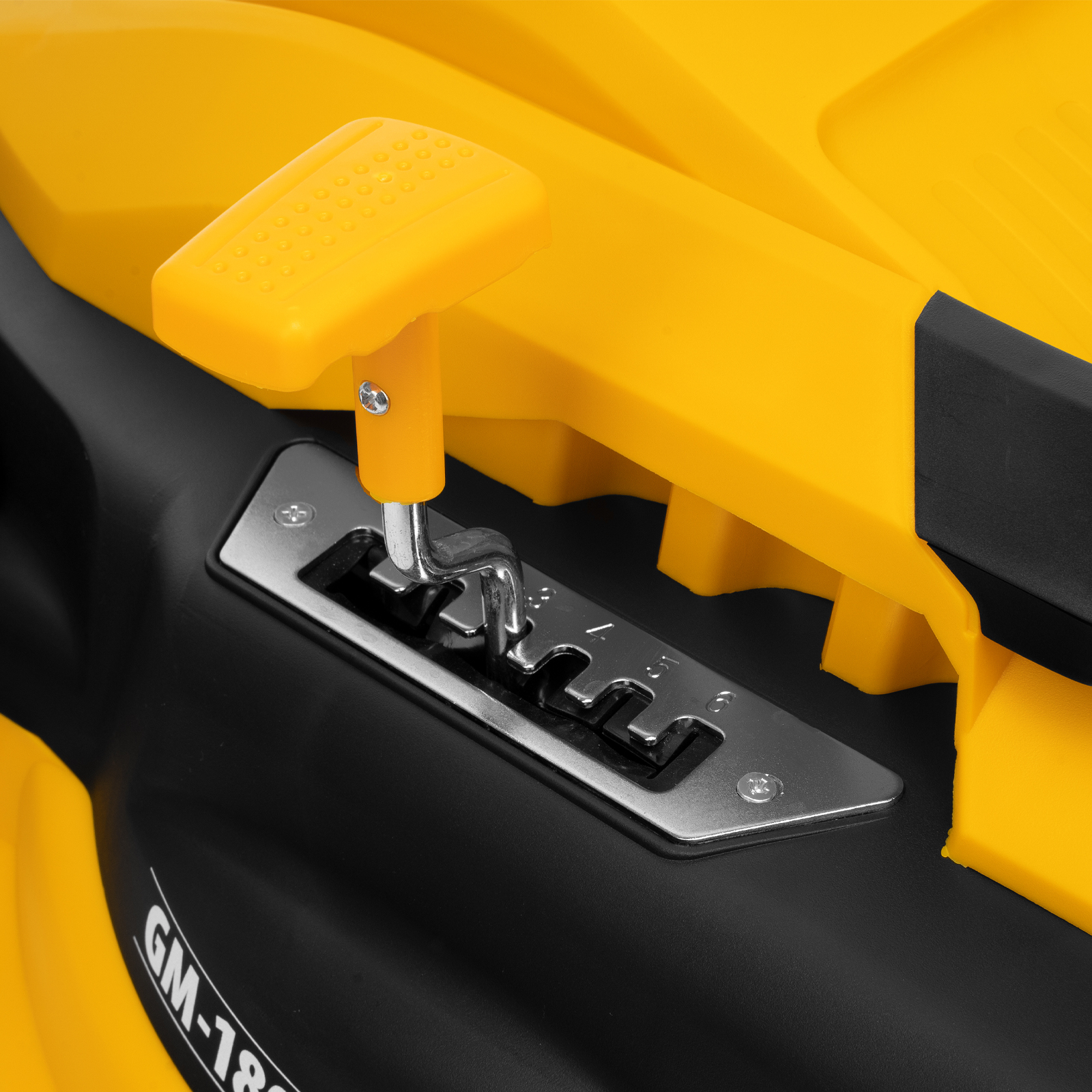 - Рукоятка на корпусе — газонокосилку удобно перемещать и загружать в машину для транспортировки.