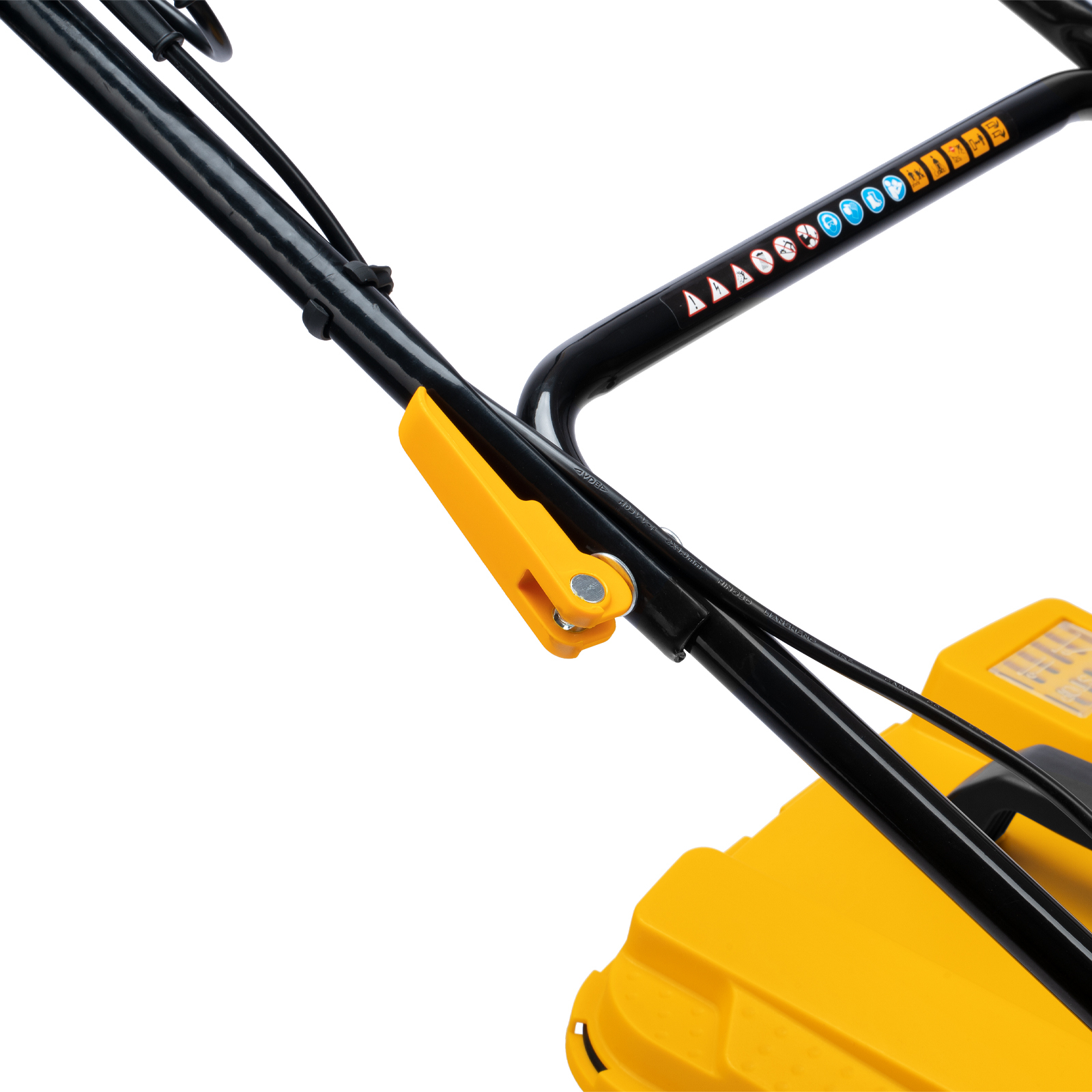 - Комфортная эксплуатация — управление с помощью скобы позволяет держать руки в любом месте рукоятки, также допускается управление одной рукой.