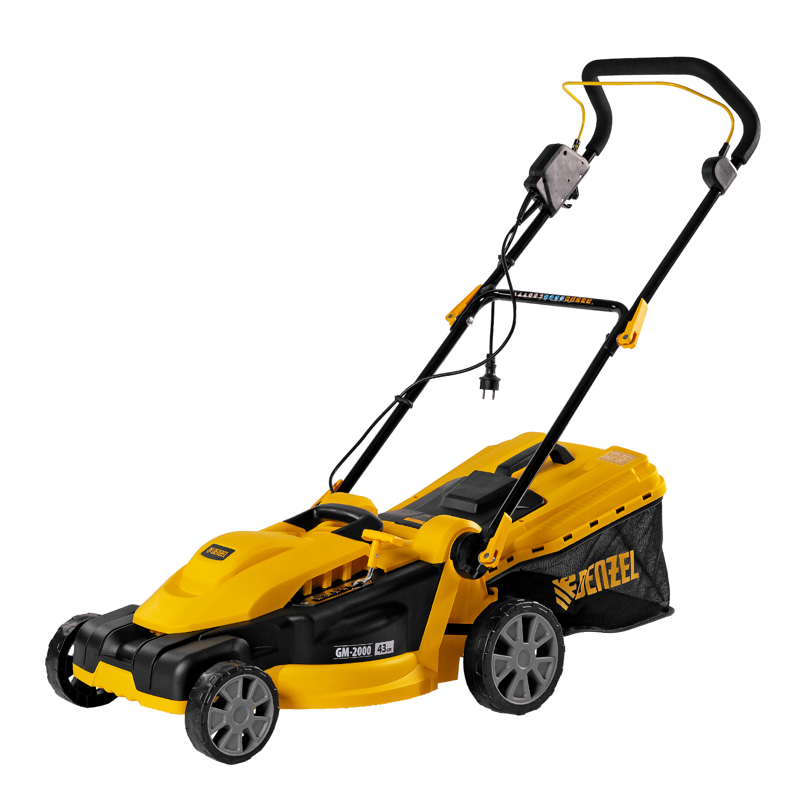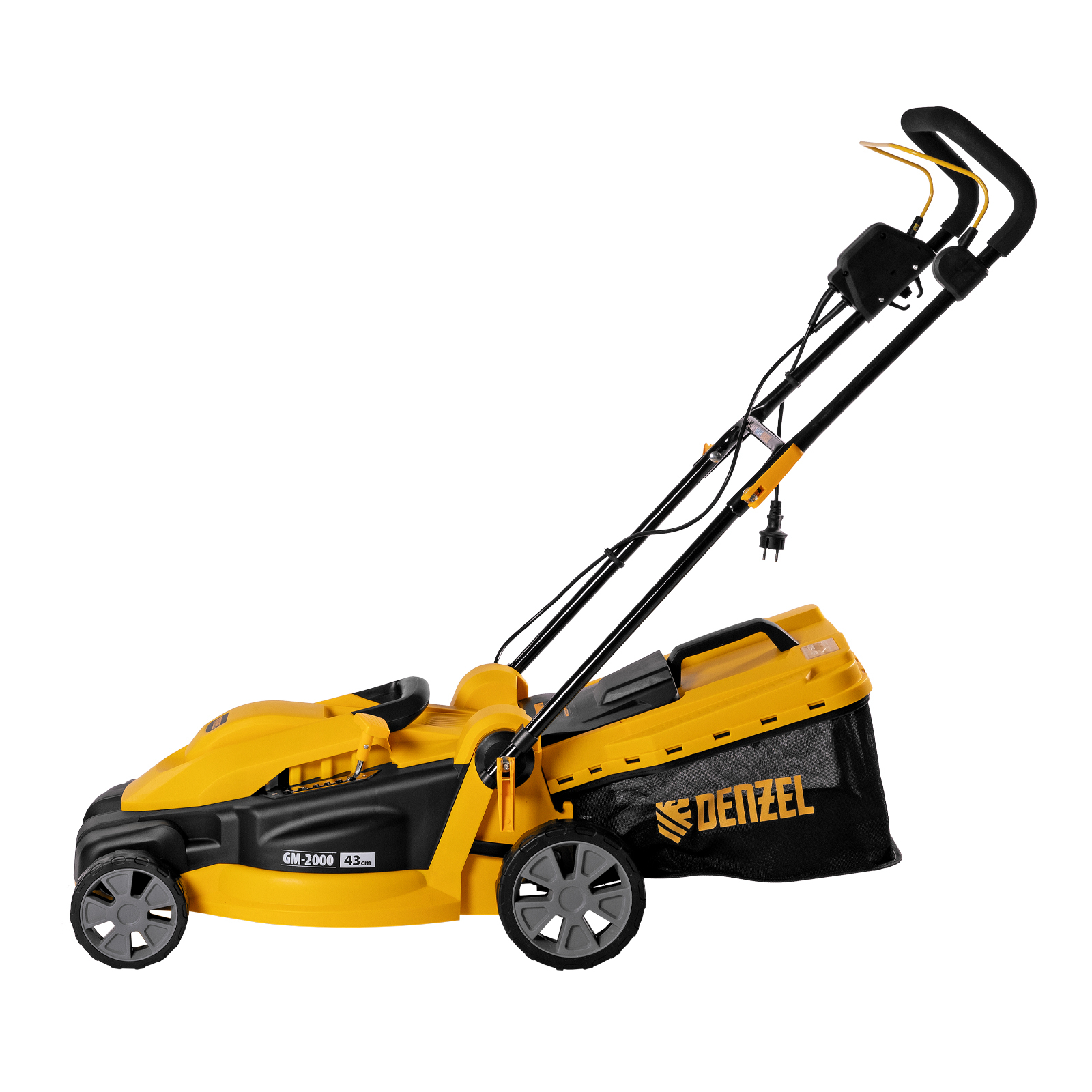 Электрическая газонокосилка Denzel GM-2000 96618 с 6 уровнями скашивания и травосборником на 45 л — маневренная и простая в управлении техника, обеспечивающая ширину скашивания 43 см. Быстро справляется с работой на площади примерно 8 соток, помогает оформлять аккуратный газон в саду и на дачном участке. Для достижения наилучшего результата предусмотрено 6 уровней скашивания травы: 20 мм, 30 мм, 40 мм, 50 мм, 60 мм и 70 мм. Ключевой особенностью является наличие функции мульчирования, которая позволяет измельчать траву в процессе скашивания для последующего использования в качестве компоста.,Косилка не требует особых навыков и сложного технического обслуживания — не нужно менять масло и свечи, заливать и сливать бензин, долго заводить и прогревать двигатель. Электродвигатель мощностью 2000 Вт работает тихо и без вредных выхлопов, он экологичен и экономичен.