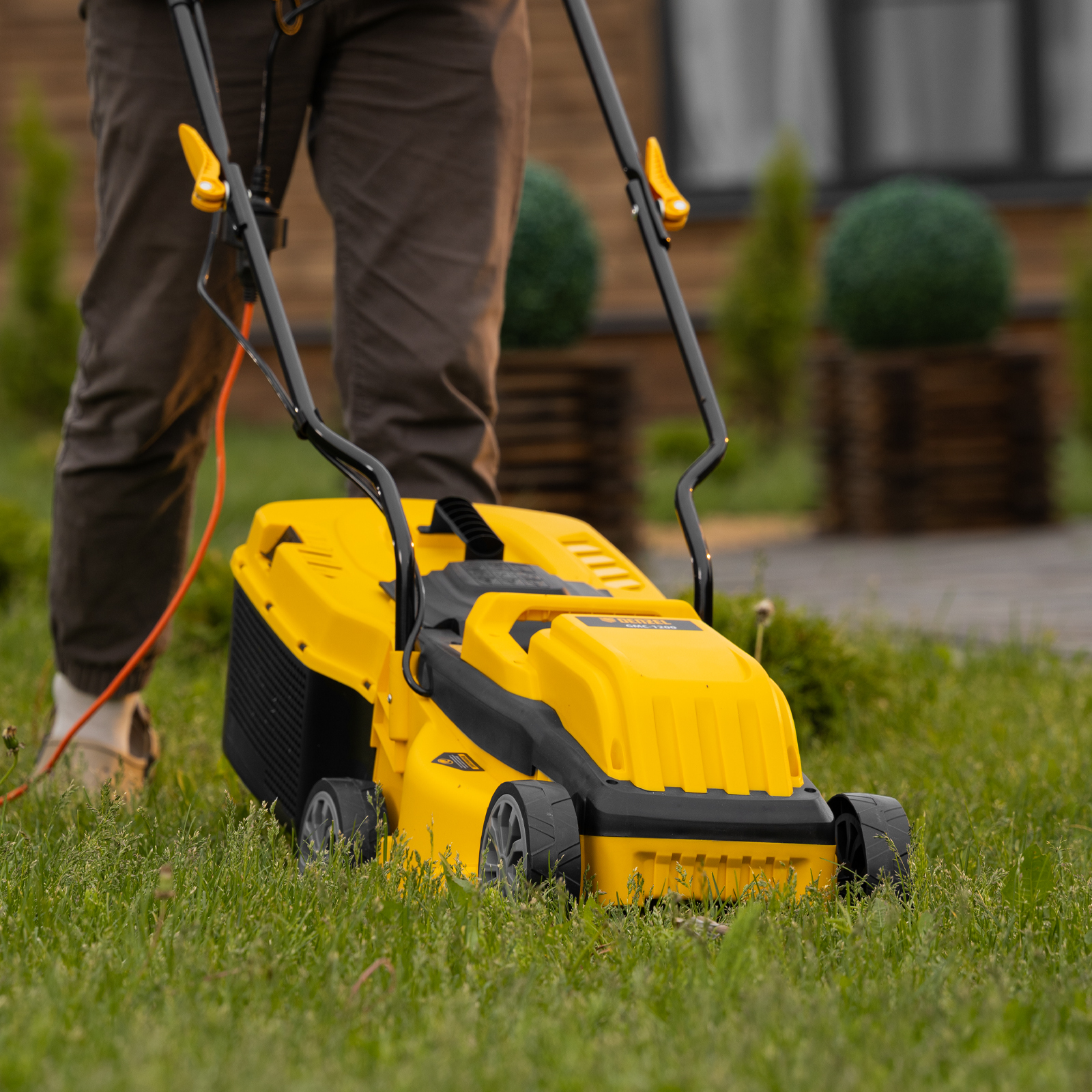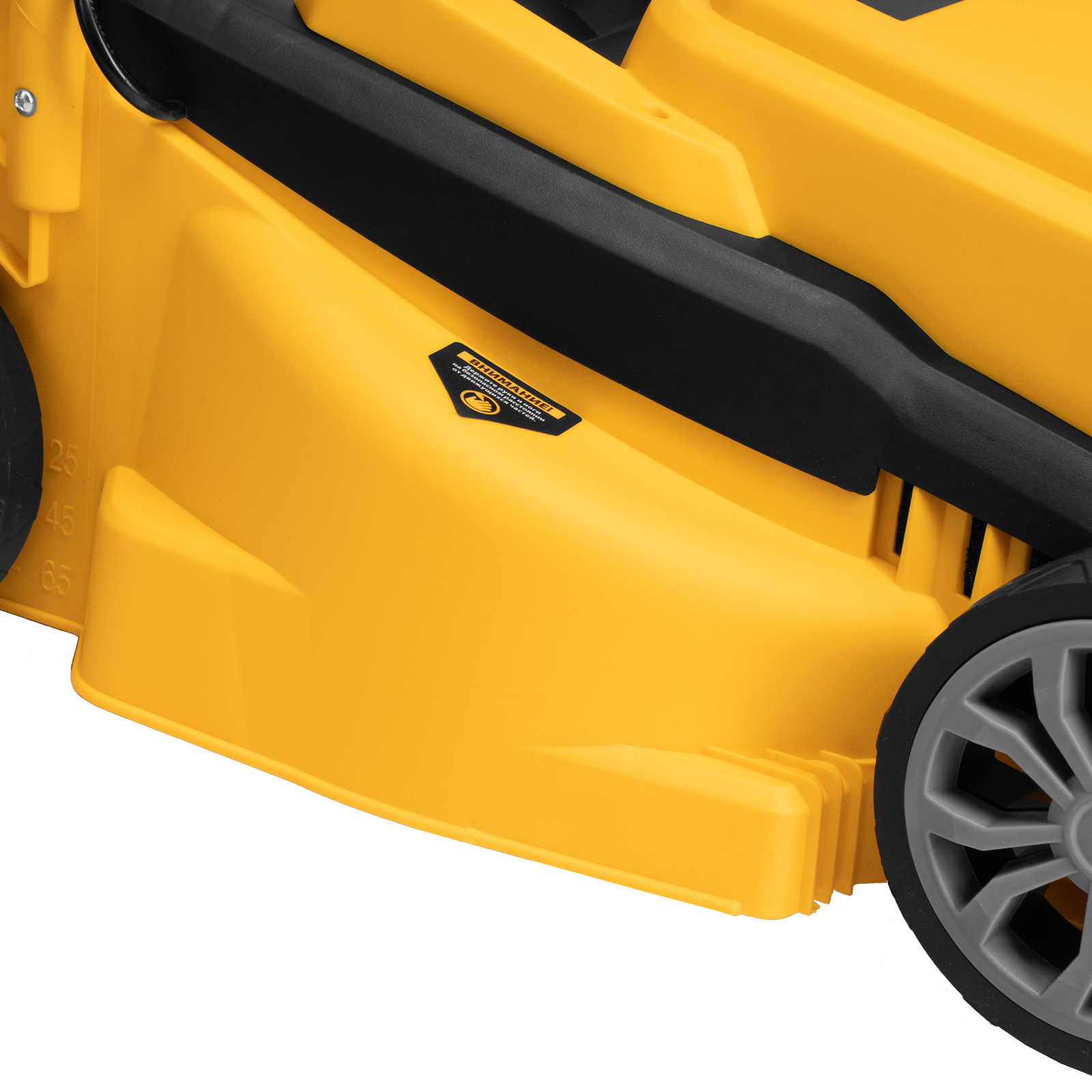 - Комфортная транспортировка — газонокосилку удобно перемещать при помощи специальной рукоятки.