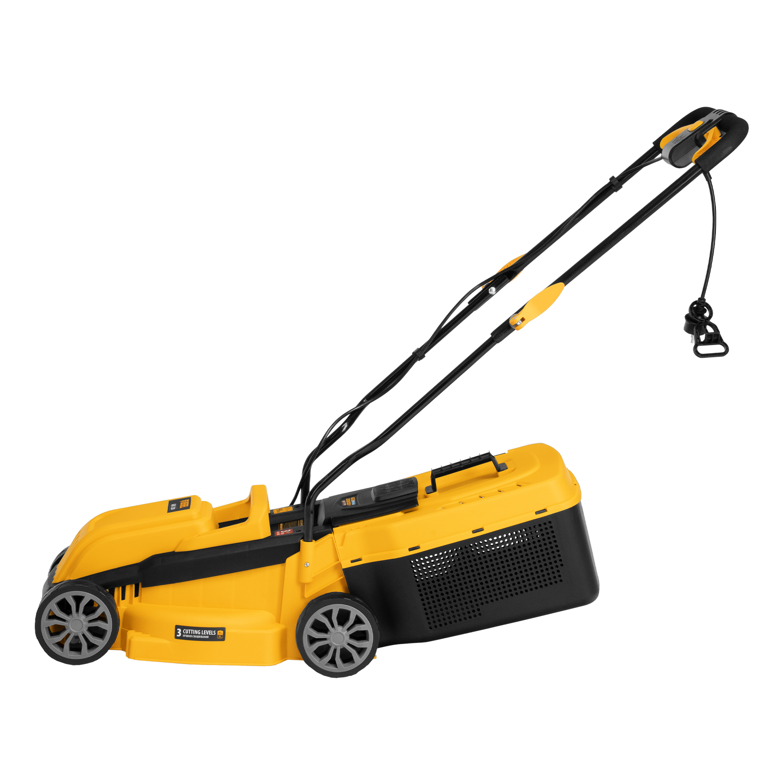 Газонокосилка с установленным ножом - 1 штТравосборник - 1 штCтойка нижняя - 1 штСтойка верхняя (с рукояткой) - 1 штФиксатор кабеля питания - 1 штФиксатор удлинителя - 1штНабор крепежа - 1 штРуководство по эксплуатации с гарантийным талоном - 1 штТранспортировочные колеса - 4шт
