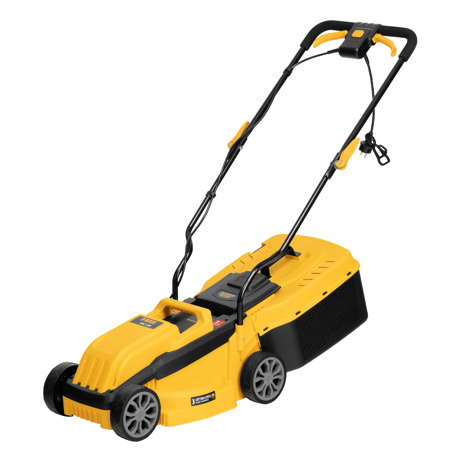 Газонокосилка электрическая GMC-1200, шир.,32см, 1200 Вт, 3 уров., травосб. 30 л Denzel