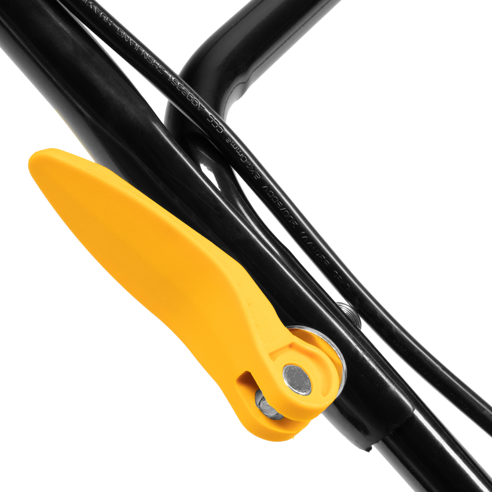 - Удобное использование — высота скашивания регулируется при помощи одного рычага.