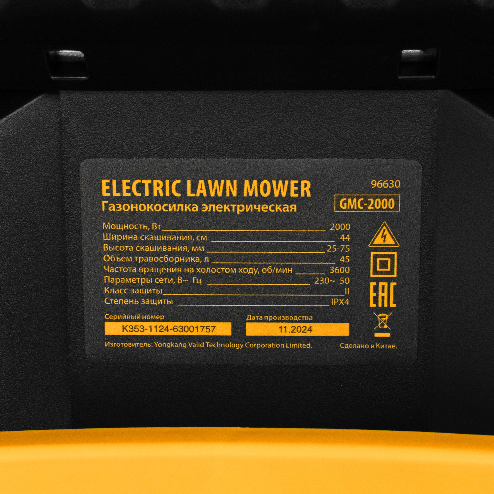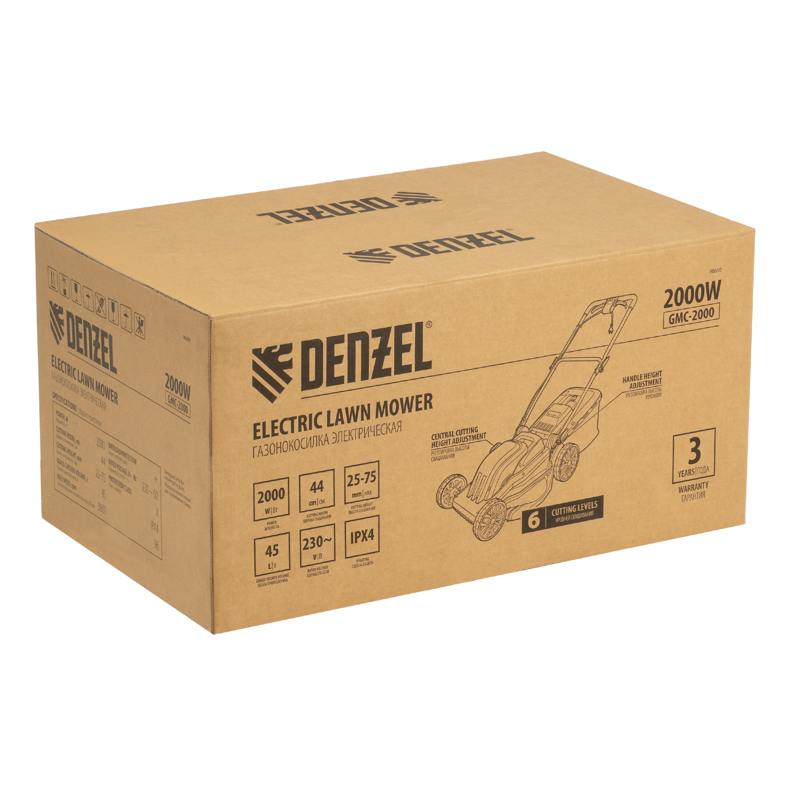 Газонокосилка электрическая GMC-2000, шир. 44см, 2000 Вт, 6 уров., травосб. 45 л Denzel