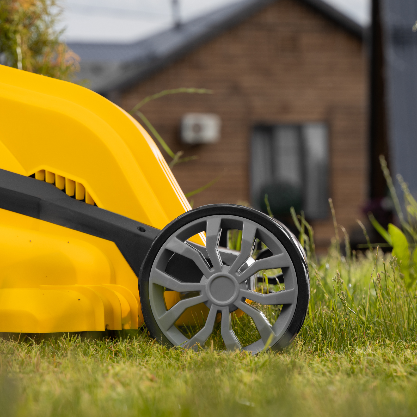 - Комфортная транспортировка — газонокосилку удобно перемещать при помощи специальной рукоятки.