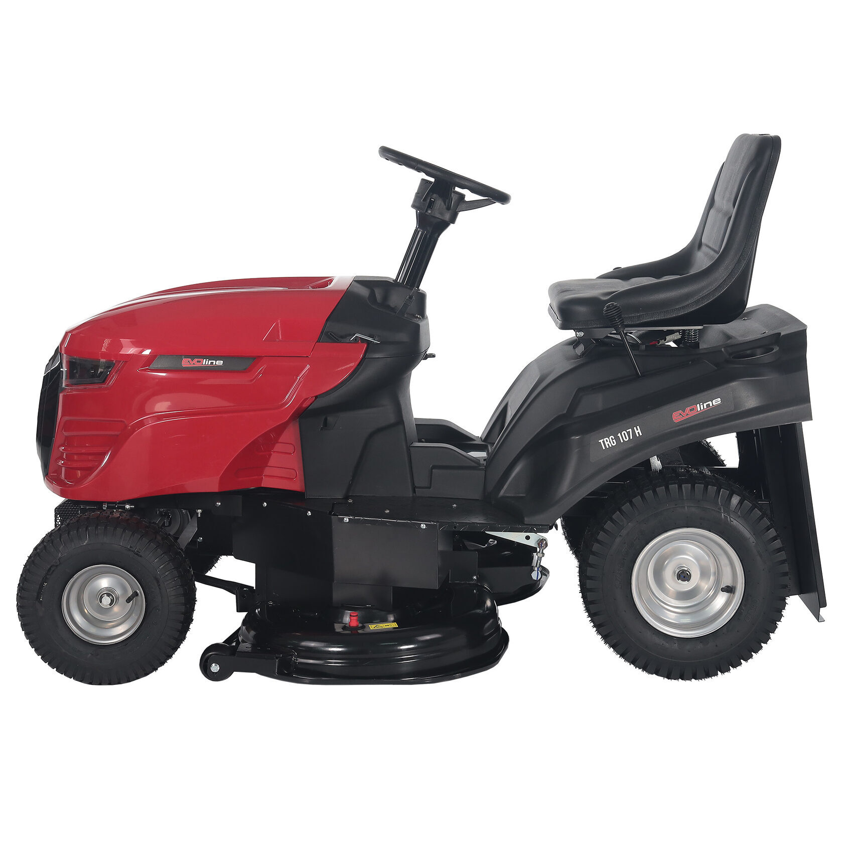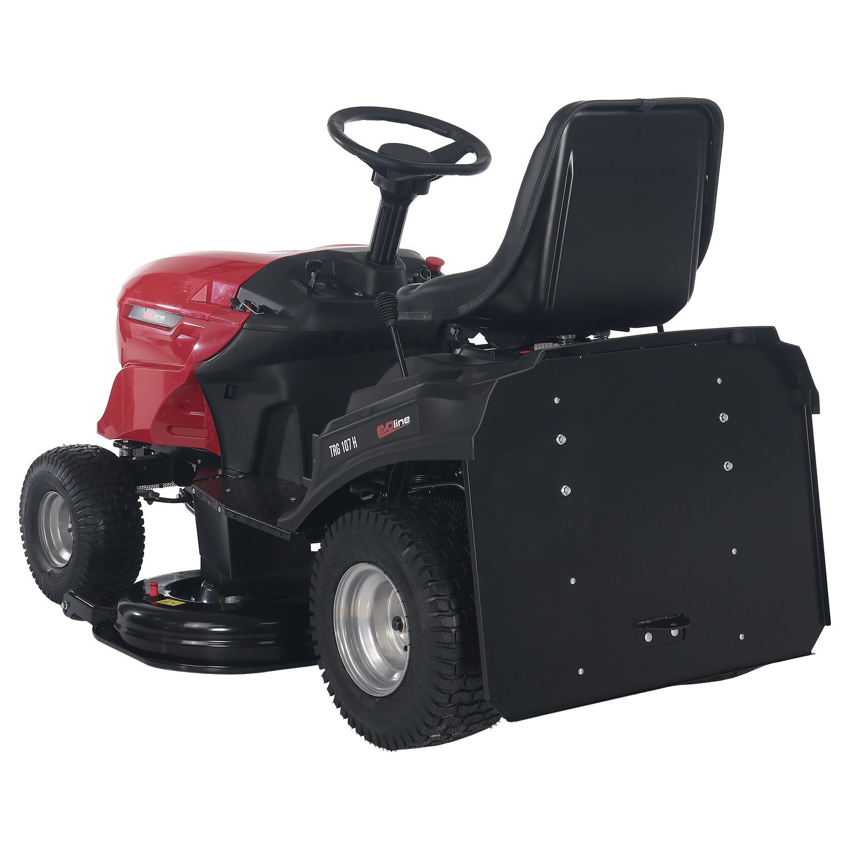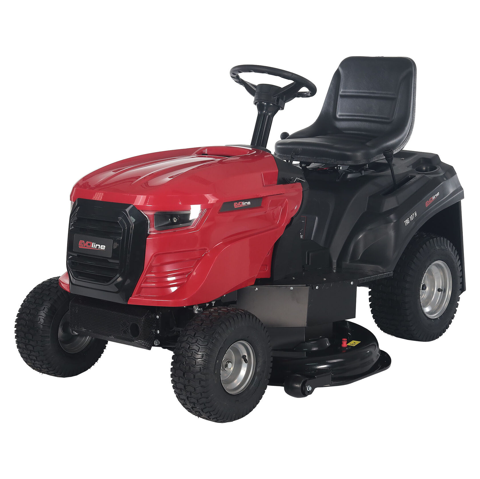 Косилка с сиденьем EVOline TRG 107 H предназначена для быстрого кошения травы на больших территориях. Ширина кошения на модели TRG 107 H составляет 107 см, а высота регулируется в диапазоне от 35 до 75 мм (5 положений). На данной газонокосилке с сидением установлена механическая трансмиссия, светодиодные фары и бампер.