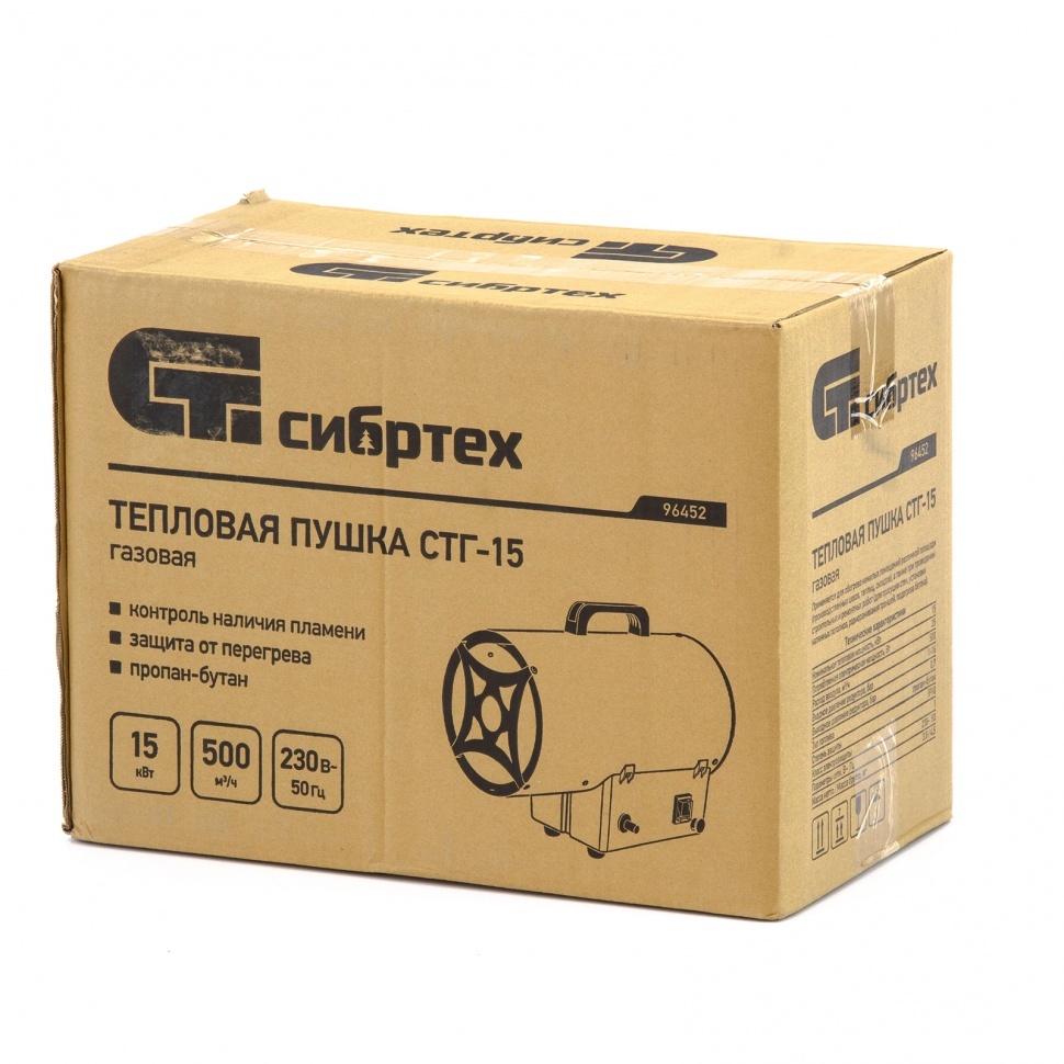 Газовая тепловая пушка СТГ-15, 15 кВт, 500 м3/ч, пропан-бутан Сибртех