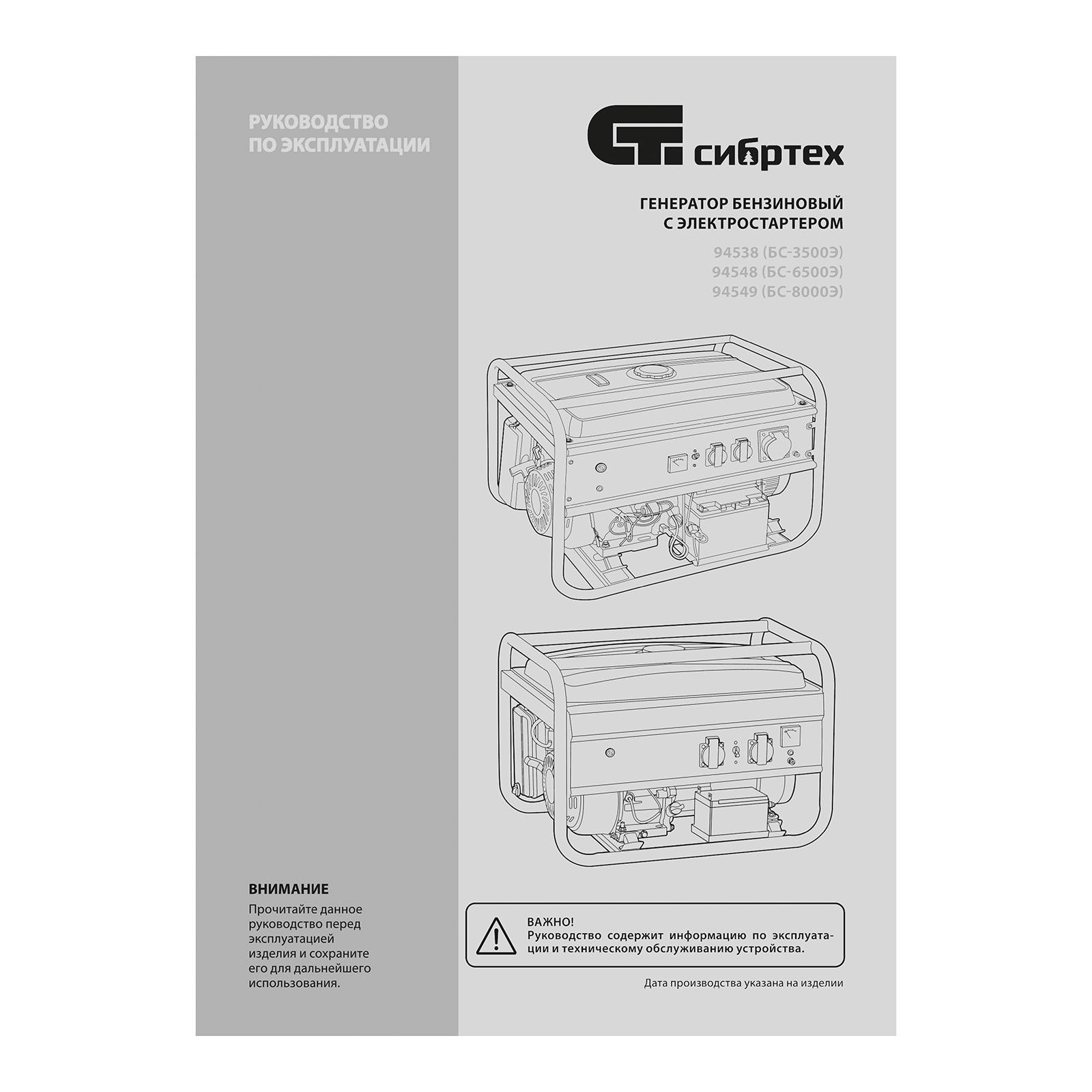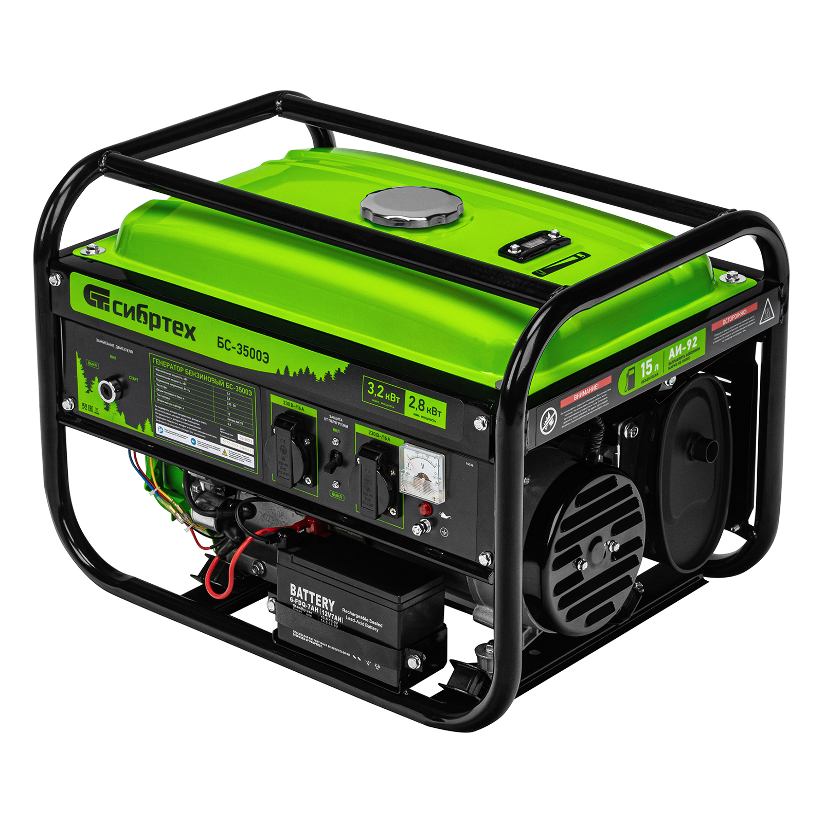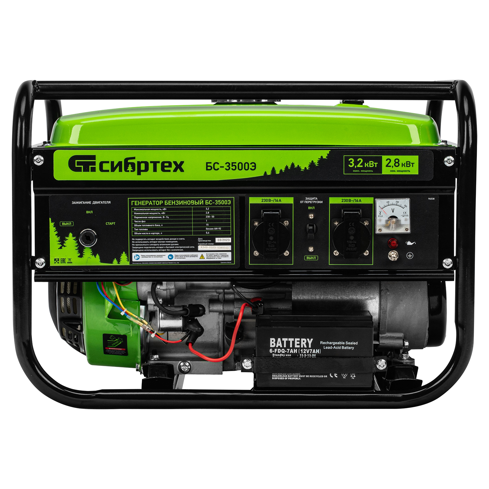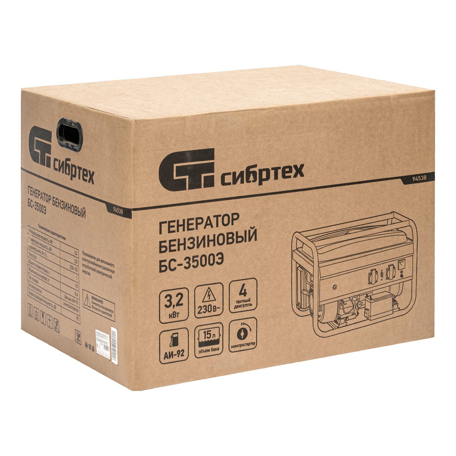 Генератор бензиновый БС-3500Э, 3.2 кВт, 230В, 4-х тактный, 15 л, электростартер Сибртех