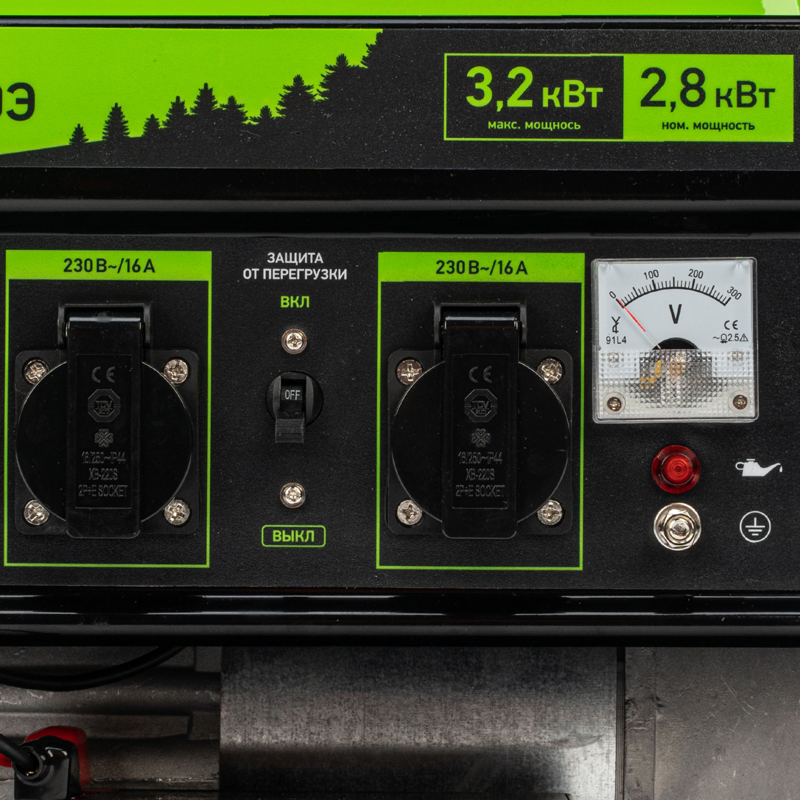 Бензиновый генератор Сибртех БС-3500Э 94538 выходной мощностью 3,2 кВт, с электростартером и баком объемом 15 л, поддерживает напряжение 230 В и предназначен для автономного электроснабжения в условиях отсутствия бытовой электросети. Для подключения потребителей предусмотрены 2 розетки 230 В/16 А. Автономный регулятор напряжения AVR позволяет подключать чувствительные приборы без риска их поломки. Генератор пригодится на дачном участке.
