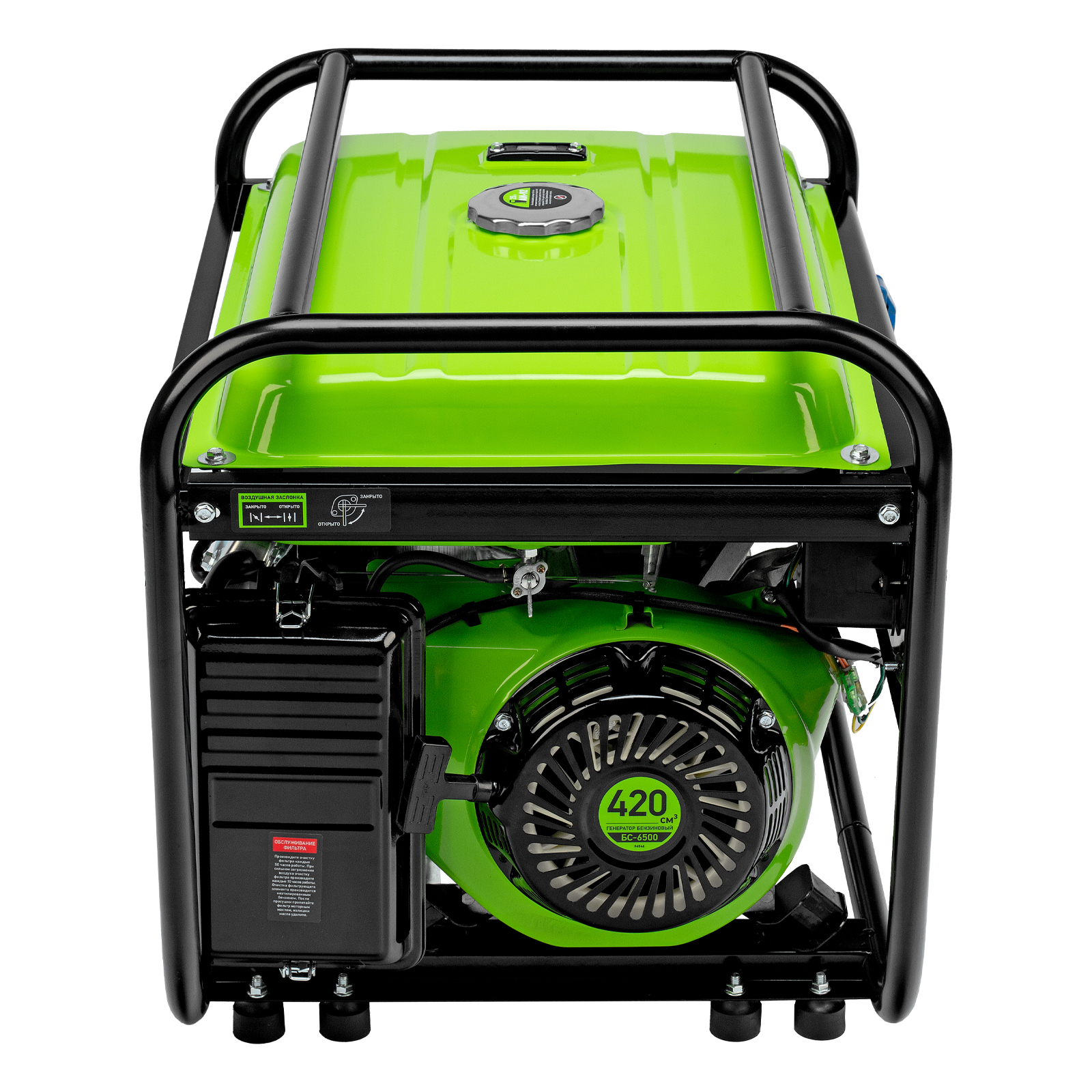 Бензиновый генератор Сибртех БС-6500 94546 на 230 В, с 4-тактным двигателем, баком на 25 л и ручным стартером, выдает 5,5 кВт и подходит для создания целой электросети в загородном доме, магазине, мастерской или на строительной площадке. К нему можно одновременно подключить 5 ламп накаливания, холодильник, телевизор. Для подключения приборов предусмотрено 3 розетки. Одна из них силовая на 32А, что позволяет запитать мощное оборудование, например, электрическую плиту.